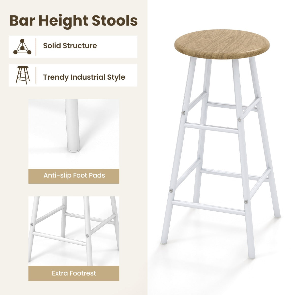 Are you looking forward to having a place where you can relax after a busy day of work? With this table and chair set, you can easily have a cute little bar at home. With a wide tabletop, extra cup holders and a 3-tier open shelf with a wine rack, this table offers a perfect solution for your wine collection. The table features adjustable foot pads to keep the table balanced even on uneven floors. In addition, the high-quality plates and metal frame keep the table and stools in a stable position without any wobble. The sleek, industrial look will bring flair to your home! You can use it in any kitchen or dining room as a bar table. If you are looking for a bar set like this, do not hesitate to place an order! Designed for Wine Lovers: The bar table features customized storage space for wines and stemware. The wine glass holder under the tabletop shelf is suitable for Burgundy glasses, Champagne glasses, cocktails glasses, etc., while the 2-tier wine rack can hold up to 6 bottles. In addition, there are also multifunctional side shelves for utensils and other sundries. Reinforced Structure: Crafted from high-quality material, the 3pcs dining table set boasts a rather sturdy construction that can support up to a large weight (with the tabletop holding up to 100kg and the stool 150kg). Besides, it is even reinforced by the triangular structure underneath the tabletop for longer service life. Free Arrangement of 3PCS Set: This counter height dining set includes a 120cm bar table and 2 round barstools, which can be freely arranged according to your needs. For example, you can sit face-to-face or side-by-side as the stools are easy to move. And the 2 stools can also be tucked underneath the tabletop to save space when not in use. More Details for Safe and Comfort: The 2 bar chairs with comfortable round seats and sturdy footrests will give you a relaxing seating experience. Plus, the premium MDF tabletop with 3D vivid wood grain not only looks stylish, but also is easy to clean. And the safe round corners can protect your family members from bumps or scratches. Versatile Usage and Maintenance: The industrial pub table and stool set is suitable for home, bar, cafe, and anywhere you’d like to enjoy the cocktail time with friends or family. When it comes to daily maintenance, you can just clean it with a soft rag for great convenience.