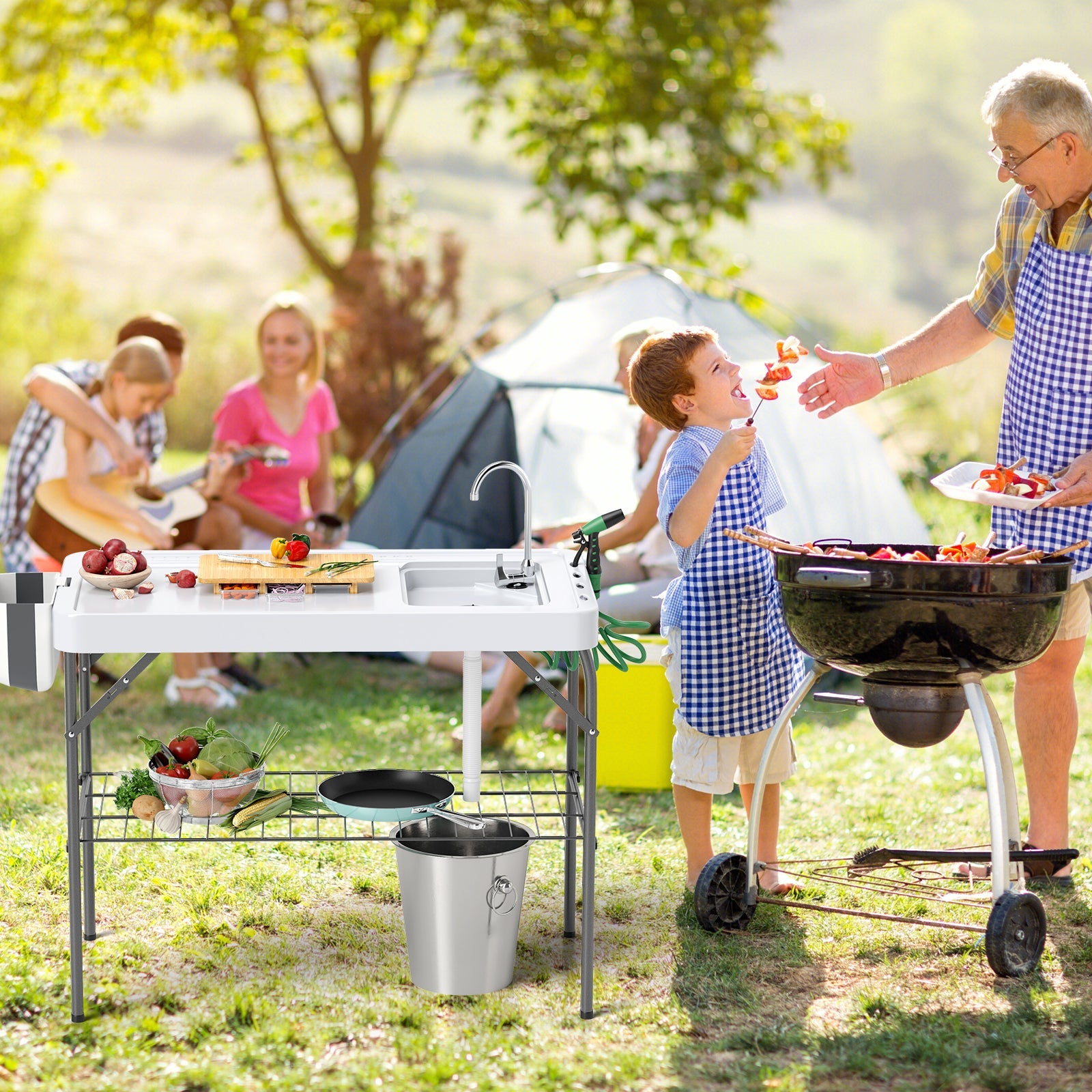 Foldable Fish Cleaning Table 2 in 1 Outdoor Workstation with Sink