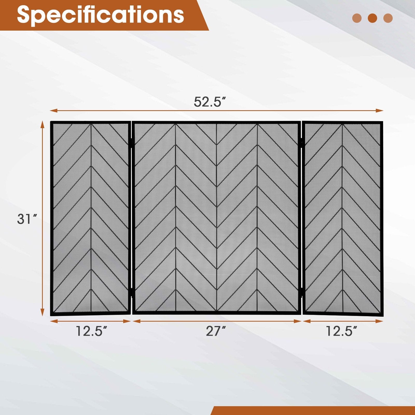 Enhance the safety and style of your fireplace with this heavy-duty 3-panel fireplace screen. Made with premium materials, the metal frame ensures a solid structure. The convenient foldable design allows you to adjust the width and easily store the screen when not in use. Keep your children and pets safe by blocking sparks and wood splinters with this screen. Its clean lines and elegant herringbone-shaped frame add a vintage atmosphere to your home, making it suitable for holiday decoration. With no assembly required, you can enjoy the benefits of this screen right away, saving you time and effort. Premium Materials:The heavy duty fireplace screen is made of strong metal structure and protective metal mesh. Each piece of screen is connected to each other by flexible hinges, thus ensuring a solid structure. Convenient Foldable Design: Whatever the size of your fireplace is, you can adjust the width of the 3-panel screen to suit your needs. In addition, you can easily fold it for easy storage when you don't need to use it. Block the Sparks: This 3-panel screen keeps your children and pets out of danger by keeping them away from the fireplace. Additionally, the standing fireplace screen blocks sparks and wood splinters during combustion. Suitable for Various Scenarios: The 3-piece fireplace screen has clean lines and elegant herringbone-shaped frame. It can bring a vintage atmosphere to your home. Of course, it can be used not only for fireplace but also for holiday decoration. No Assembly Required: This 3-piece screen can help you to save the hassle of installation! No assembly or tool needed! You can use this product as soon as you open the package, which can save you a lot of time and energy.