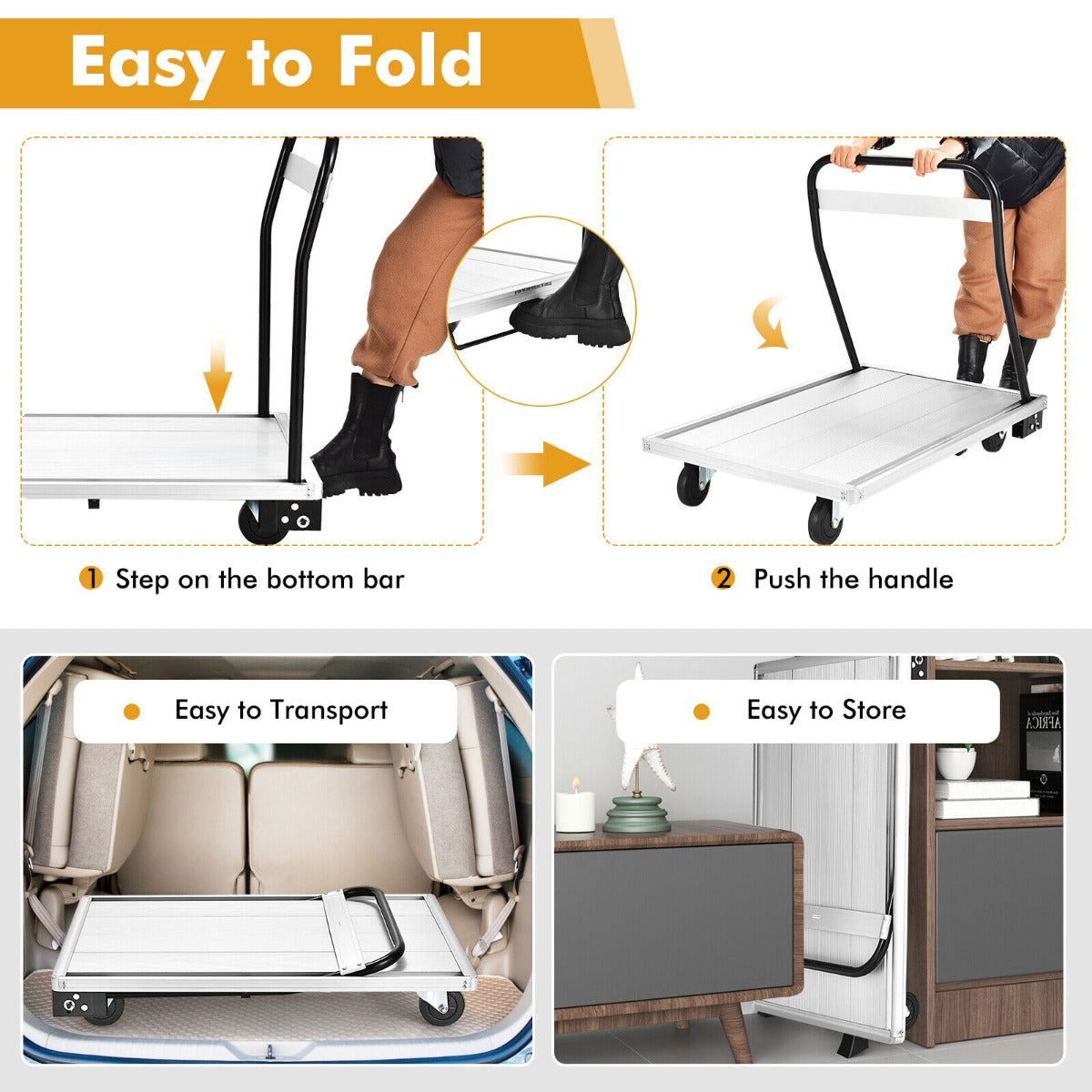 Folding Aluminum Alloy Platform Truck with 4 TPR Wheels and Handle