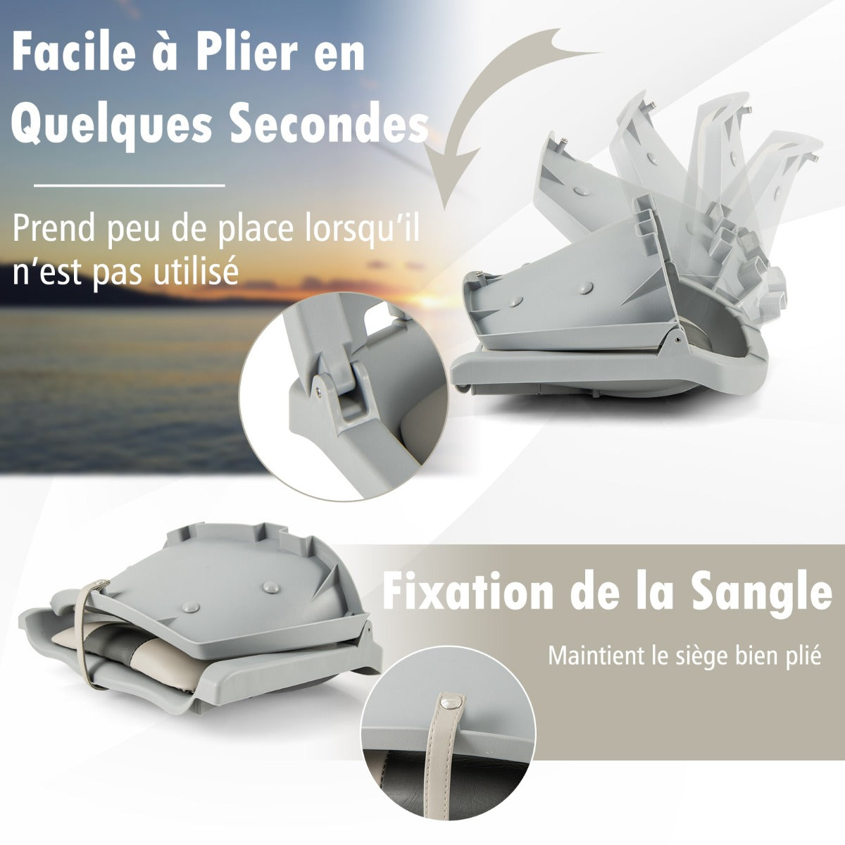 Color: Gray+White Material: PP, PVC, Sponge Overall Dimensions: 57 x 51 x 35 cm (L x W x H) Seat Size: 37 x 35 cm (L x W) Folding Size: 51 x 44 x 27 cm (L x W x H) Weight Capacity: 120 KG Net Weight: 2.5 kg Package Includes: 1 x Boat Seat 1 x User’s Manual