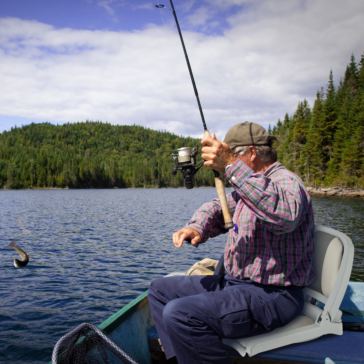 Experience ultimate comfort with this boat seat! During long boat trip, the low back and wide seat can greatly reduce fatigue. What’s more, filled with thicker sponge, the seat with back is comfortable to sit on, which won’t sag even after long-term seating. Even better, the PVC leather is waterproof, withstanding the rigors of a marine environment. When not in use, the boat seat can be effortless folded down. Also, the fixing strap will securely fasten the folded boat seat. With mounting hardware, you can easily install the boat seat in fishing boat, sightseeing boat, speedboat, canoe etc. Humanized Low-back Seat: Designed with a widened seat and an ergonomic backrest, this boat seat greatly reduces fatigue duringlong boat trips. Also, the low back design can help prevent slippage and keep the occupant securely seated while the boat is in motion. Waterproof Thicker Cushion: This folding boat seat features premium PVC exterior, which is waterproof, wear-resistant and easy to clean. Filled with high density sponge, the seat cushion is soft and comfortable to sit on, which also won’t sag even after long periods of sitting. Quick and Convenient Folding: The boat seat can easily and quickly fold in half, ensuring hassle-free folding and storage without taking up excessive room. When not using it, you can use the fixing strap to securely keep the seat in folded state. High Sturdiness and Durability: The high strength PP frame endows this folding boat seat with a strong loading capacity of up to 120 kg. And the tight stitching of the seat cushion can effectively prevent tears or fraying. Easy Installation, Wide Use: The seat can be pedestal or swivel mounted, you simply bolt the seat to the base (Mounting hardware is provided). Whether on a fishing boat, sightseeing boat, speedboat, or canoe, the boat seat without arms provides freedom of movement.
