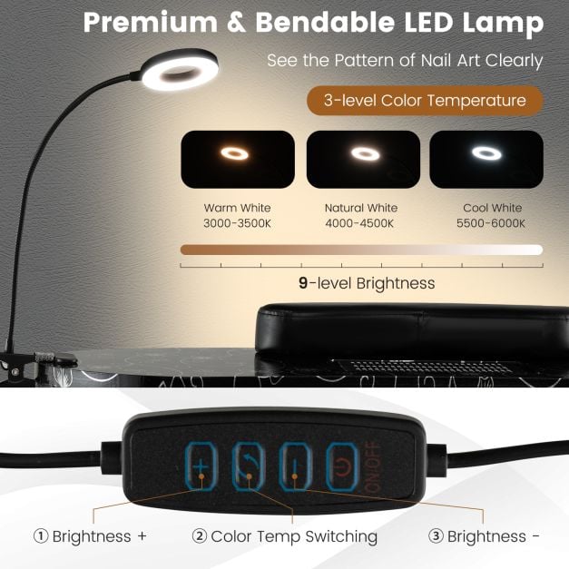 Folding Manicure Nail Table with Electric Dust Collector-Black