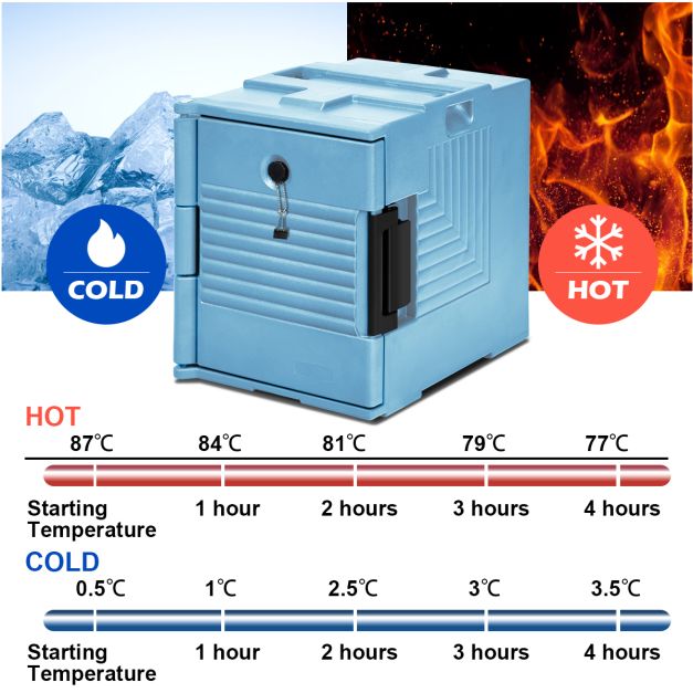Front-Loading Insulated Food Pan Carrier for 6 Full-Size Pans-Blue