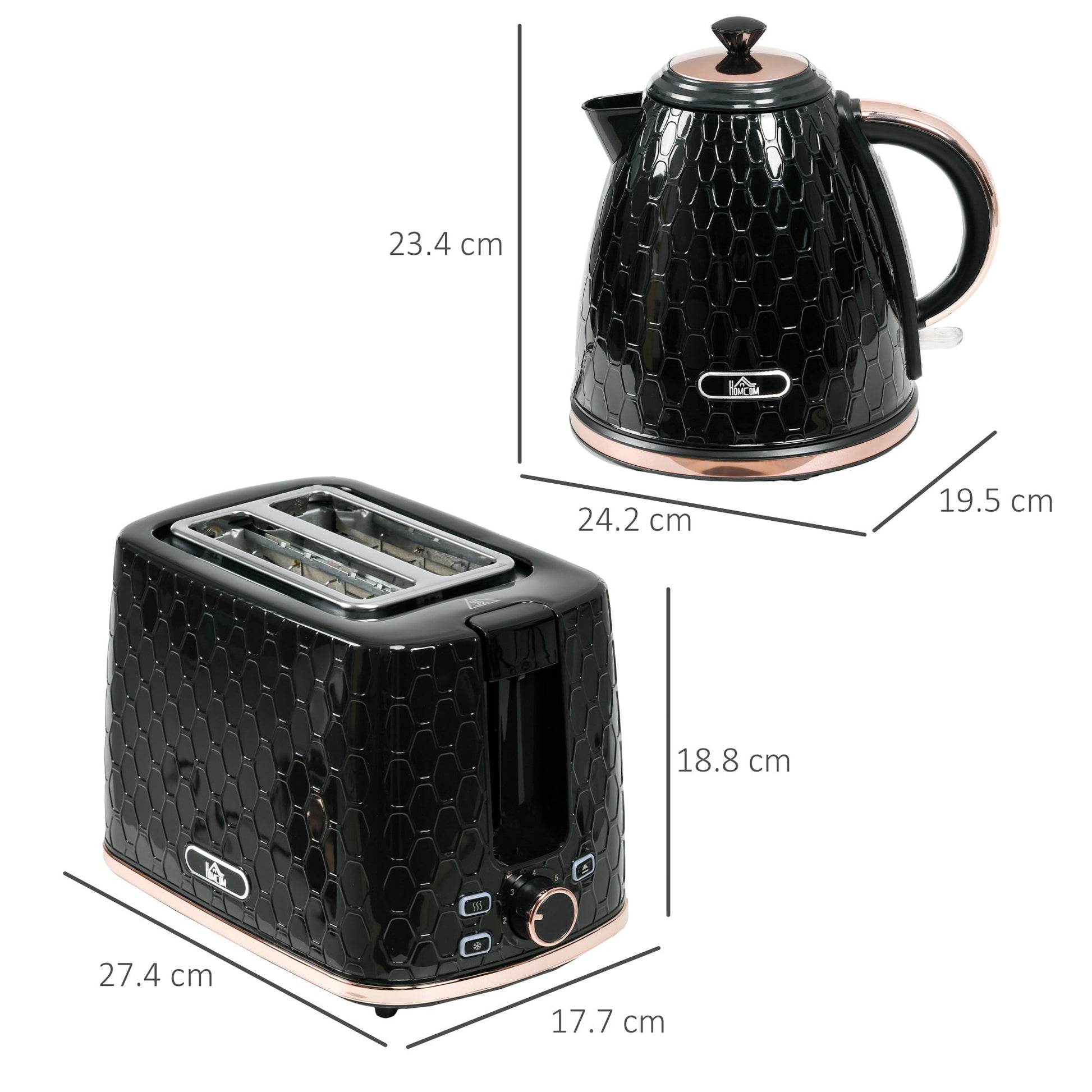 HOMCOM 1.7L 3000W Fast Boil Kettle & 2 Slice Toaster Set, Kettle and Toaster Set with Auto Shut Off, Browning Controls, Black