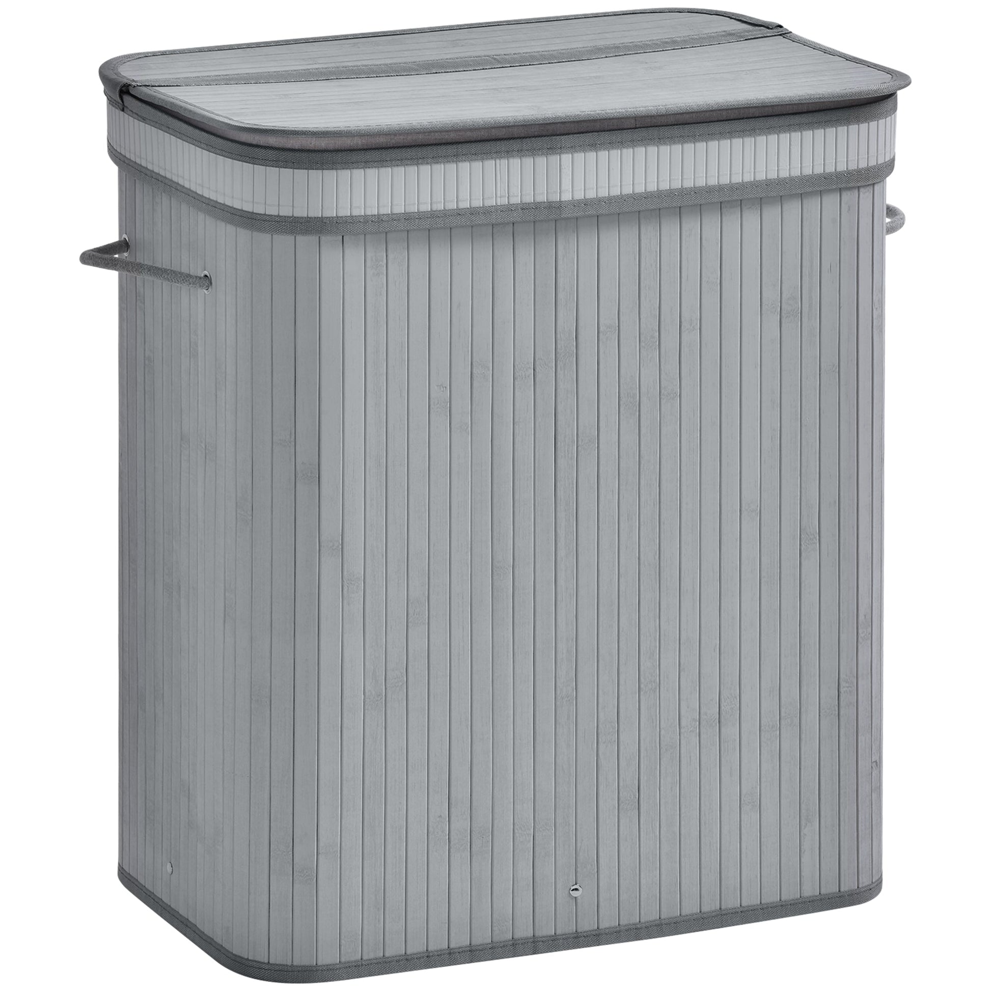 HOMCOM 100L Natural Wood Laundry Basket A Compartment w/Flip Lid Removable Lining Handles Board Base Foldable Durable Water-Resistant Dirty Clothes Storage Home Organisation Grey