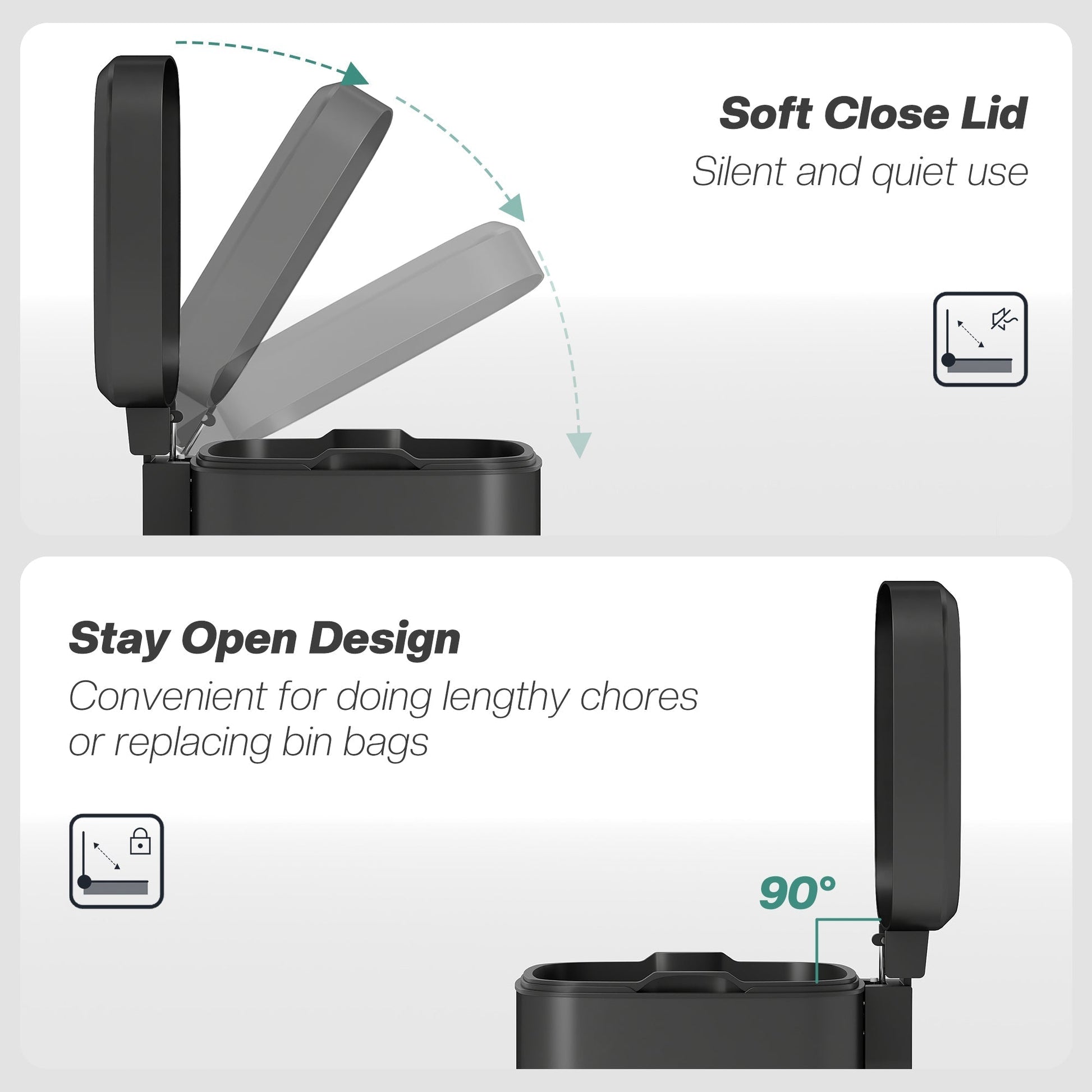 - Silent soft-close and stay-open lid, foot pedal for easy opening