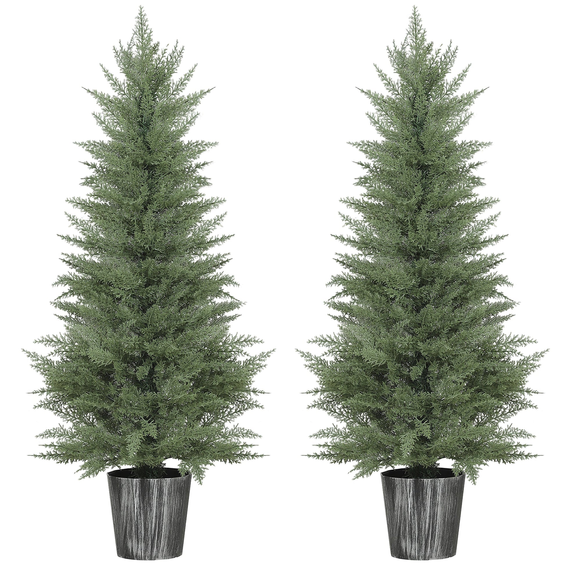 HOMCOM 135cm Artificial Cypress Trees Set of 2, UV Resistant Artificial Plants with Decorative Pot, Fake Plants for Indoor Outdoor Decor, Green