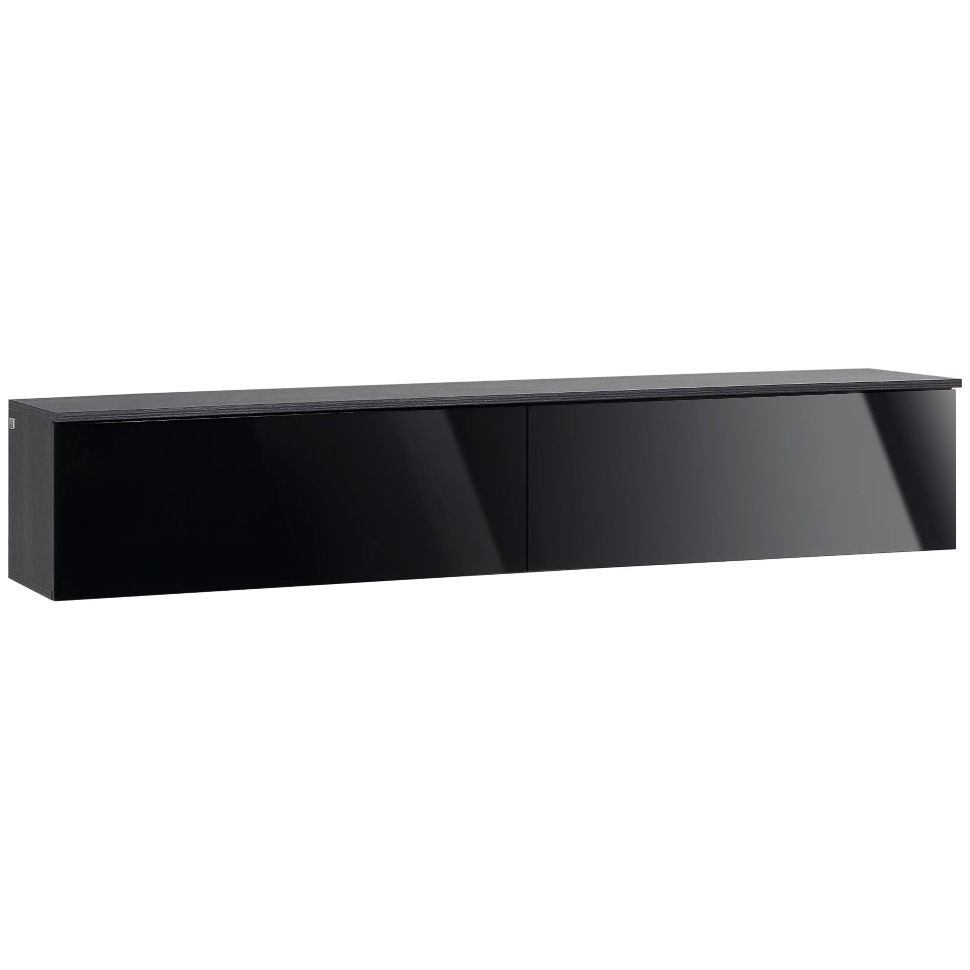 A modern touch for your living room. Do it with this HOMCOM floating TV bench. Fix it your wall and enjoy the style as you relax and watch television or play games. It comes with two cupboards to keep all accessories discreetly stored; the high gloss flip-up door gives it a modern touch. The particle board structure is solid, in a beautiful wood-effect design. Finished with a protective melamine coating.