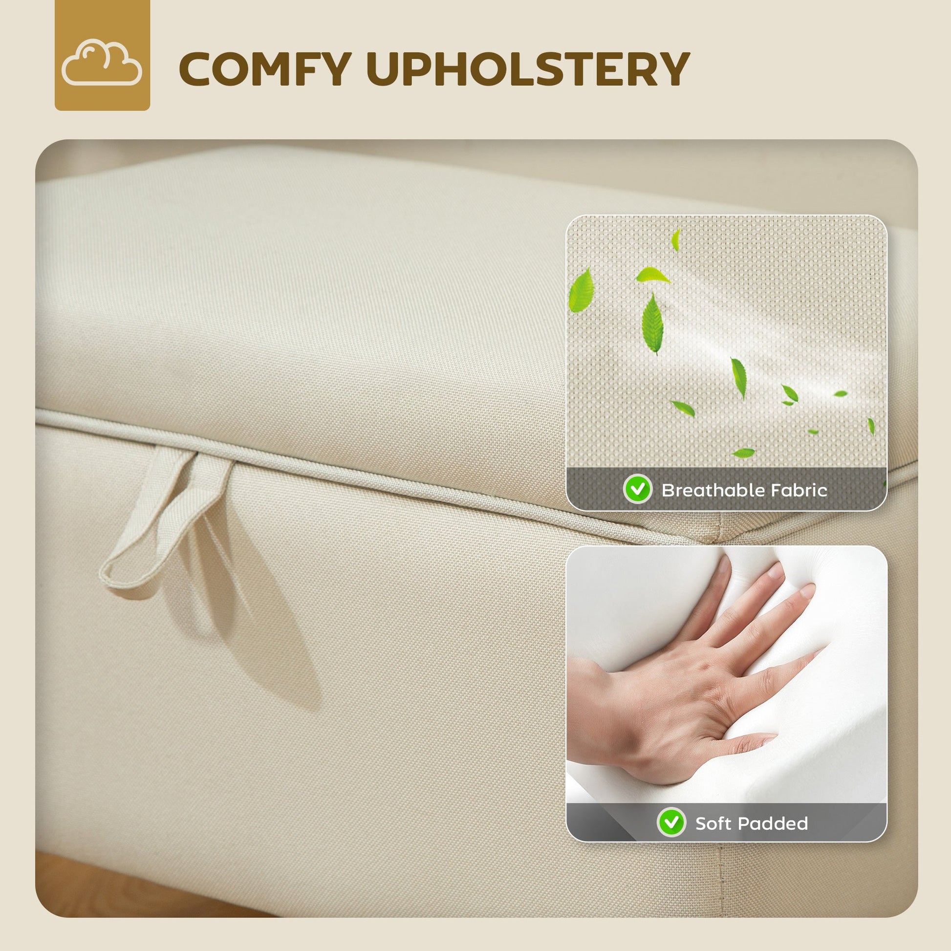 HOMCOM 16L Linen Storage Ottoman Padded Footstool with Rubberwood Legs for Storage Box, Bed End, Shoe Bench, Seating, Beige