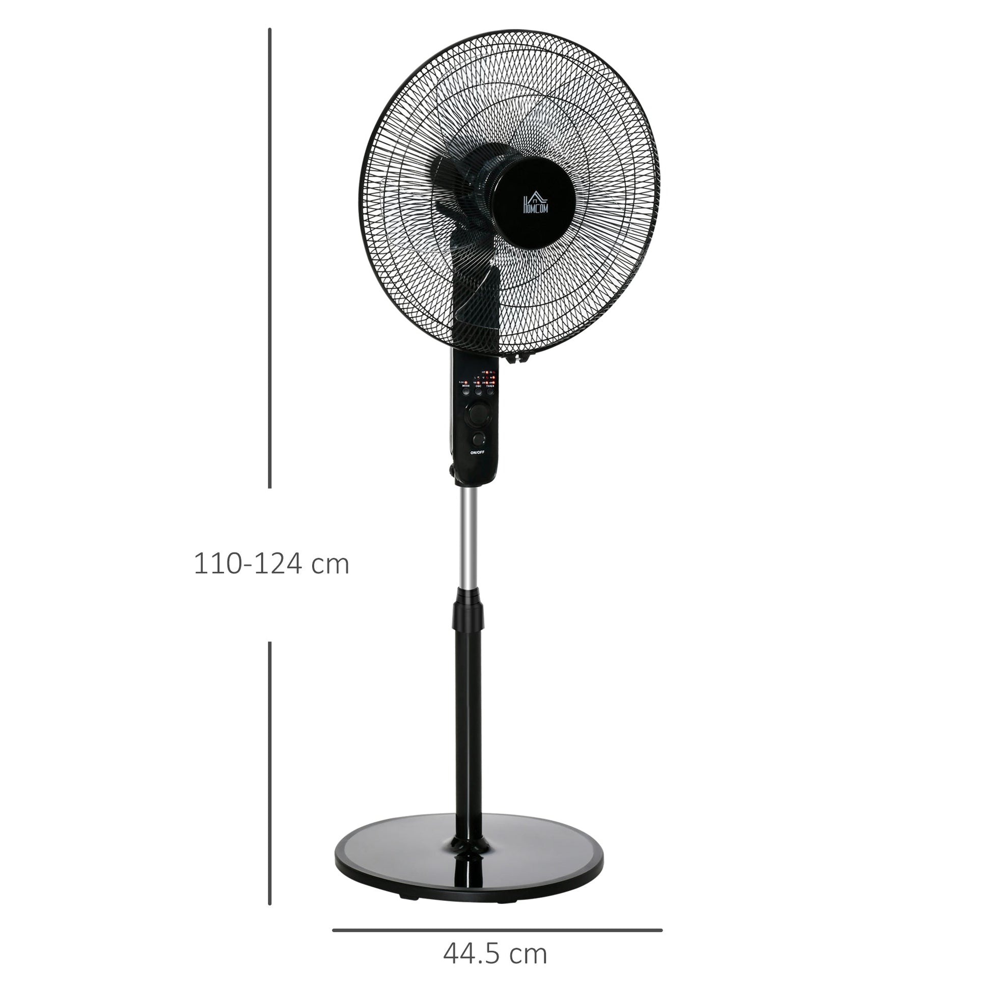 HOMCOM 18" Pedestal Fan, Oscillating Standing Fan with Remote Control, Floor Fan with Adjustable Height, 3 Speed, 7.5-Hour Timer, Black