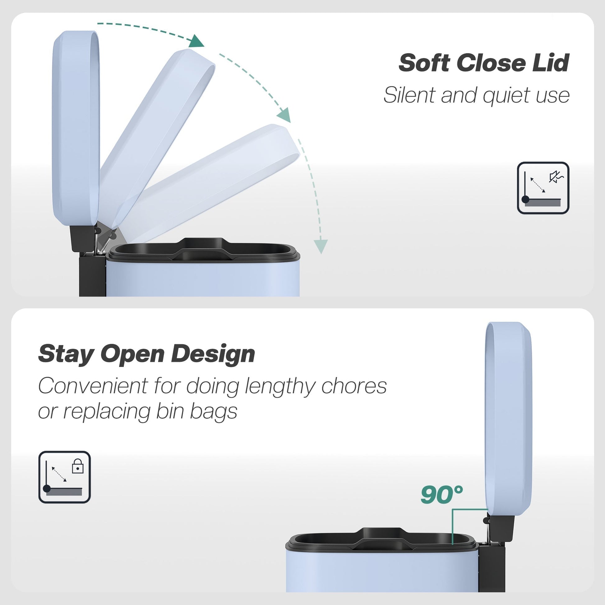 HOMCOM 20L Modern Boxy Metal Home Kitchen Bin - Light Blue
