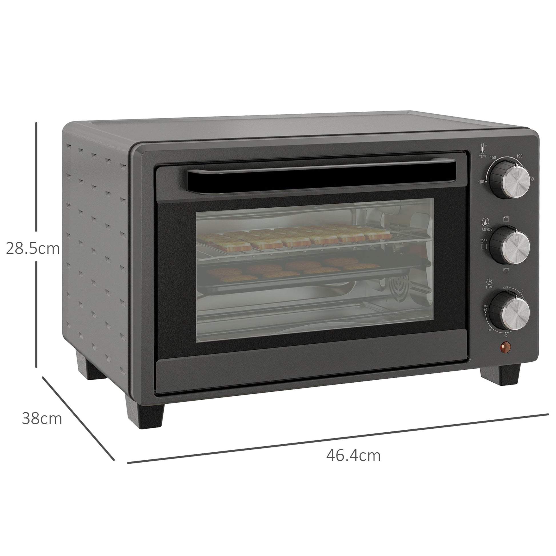 HOMCOM 21L Mini Countertop Oven, 100°C-230°C Adjustable Temp - Grey