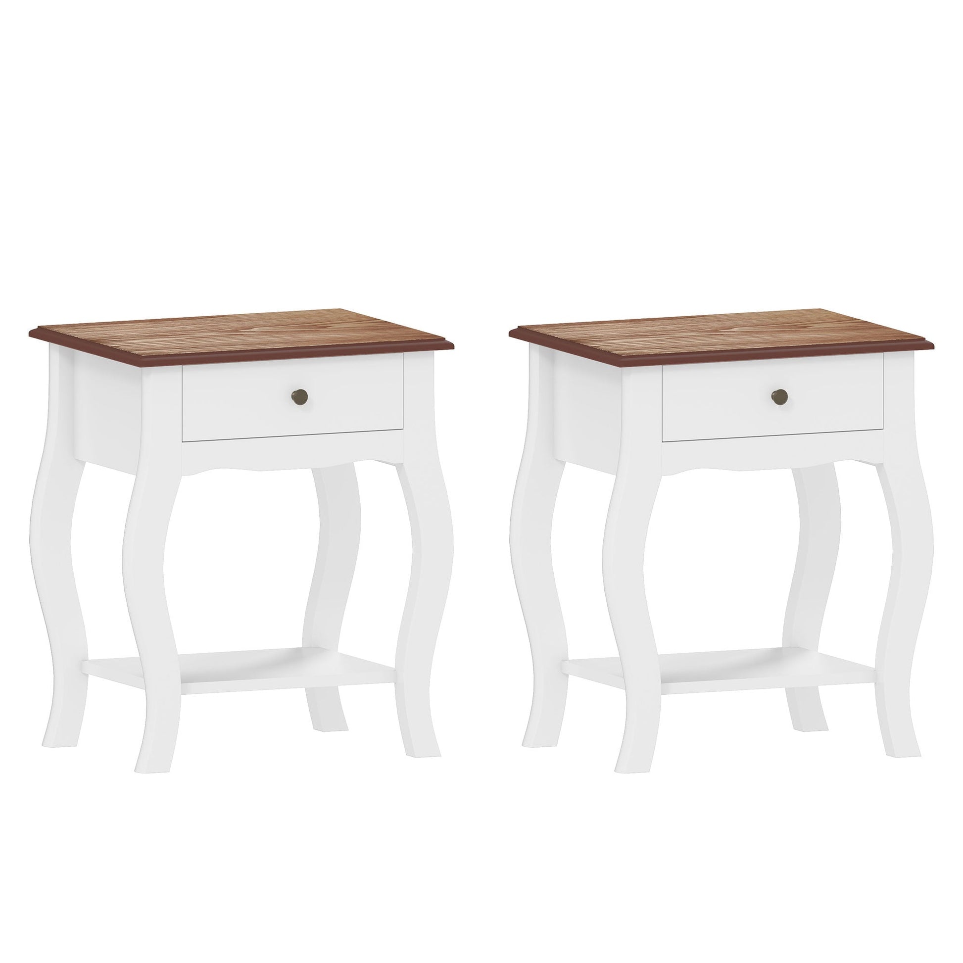 HOMCOM 2pcs Bedside Tables with Drawer, French Style Bedside Cabinets with Open Shelf for Bedroom, Living Room, White