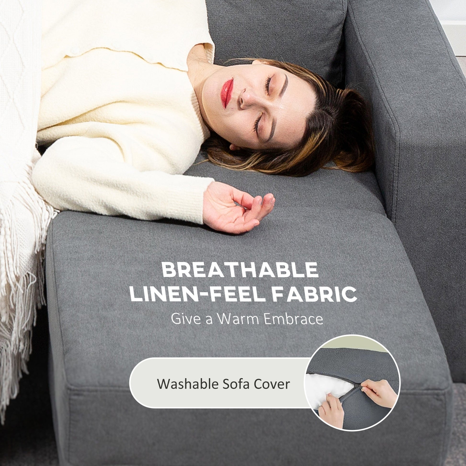 If you love to lounge at home, then this 'L' shaped sofa from HOMCOM is made for you. Its large 3-seater size is great for relaxing with family and friends and the corner shape fits all types of rooms. Thick sponge filled back and seat cushions are extremely comfortable, with the linen-look upholstery smooth to the touch. It's finished with rubber wood legs which ensure the sofa is balanced and stable at all times. It's time to sink in and love your home more than ever before.