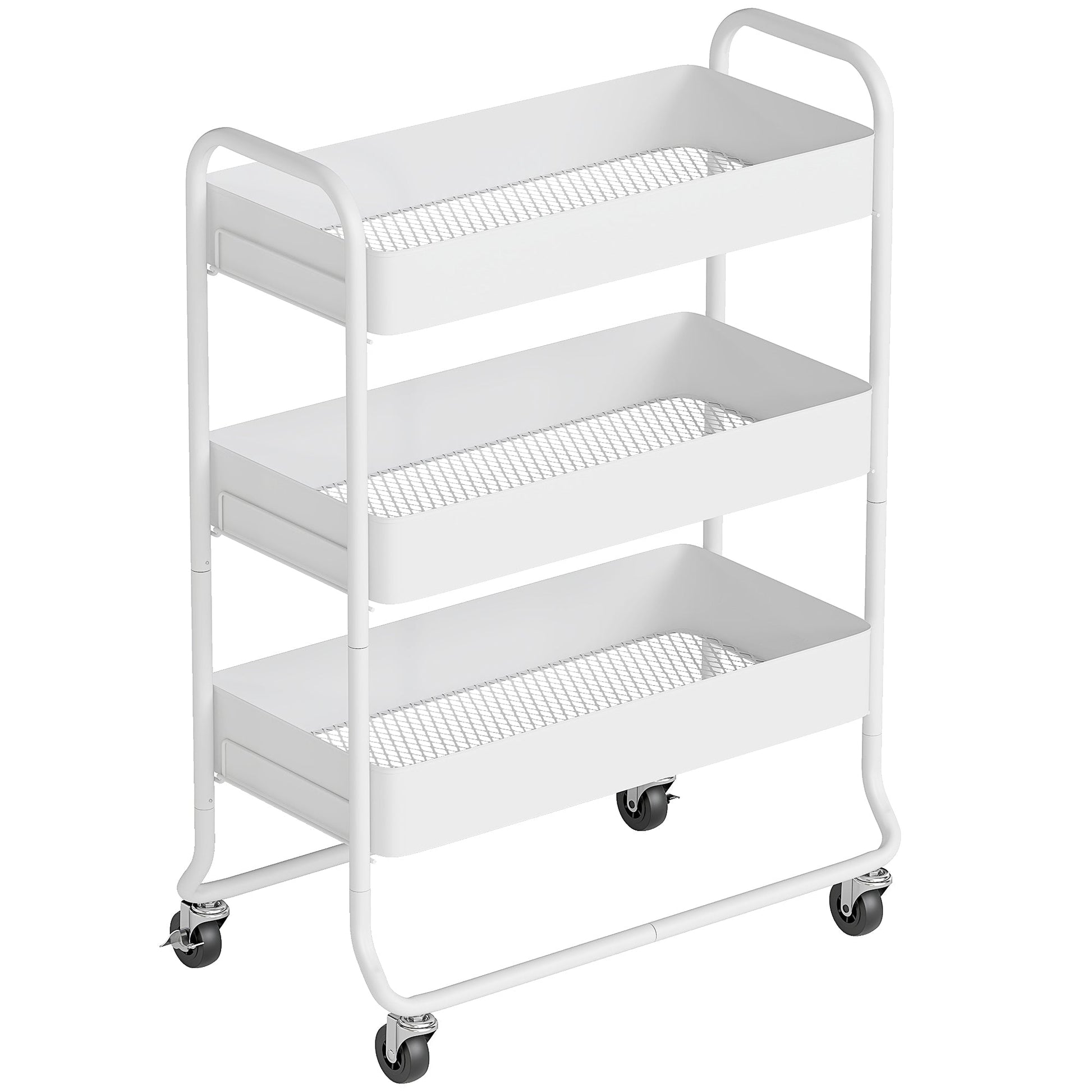 HOMCOM 3-Tier Storage Trolley on Wheels, Rolling Utility Cart with Mesh Backets for Kitchen, Bathroom, Bedroom, White