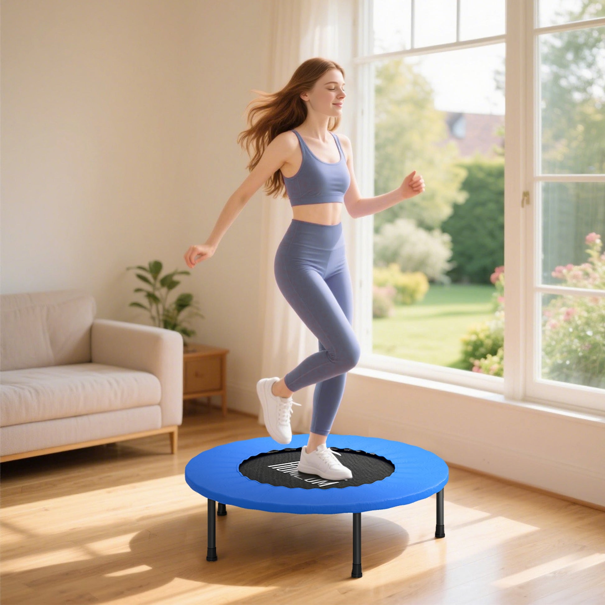 HOMCOM 32" Mini Fitness Trampoline Home Gym Yoga Exercise Rebounder Indoor Outdoor Jumper with Safety Pad, Support Up to 100 KG, Blue and Black