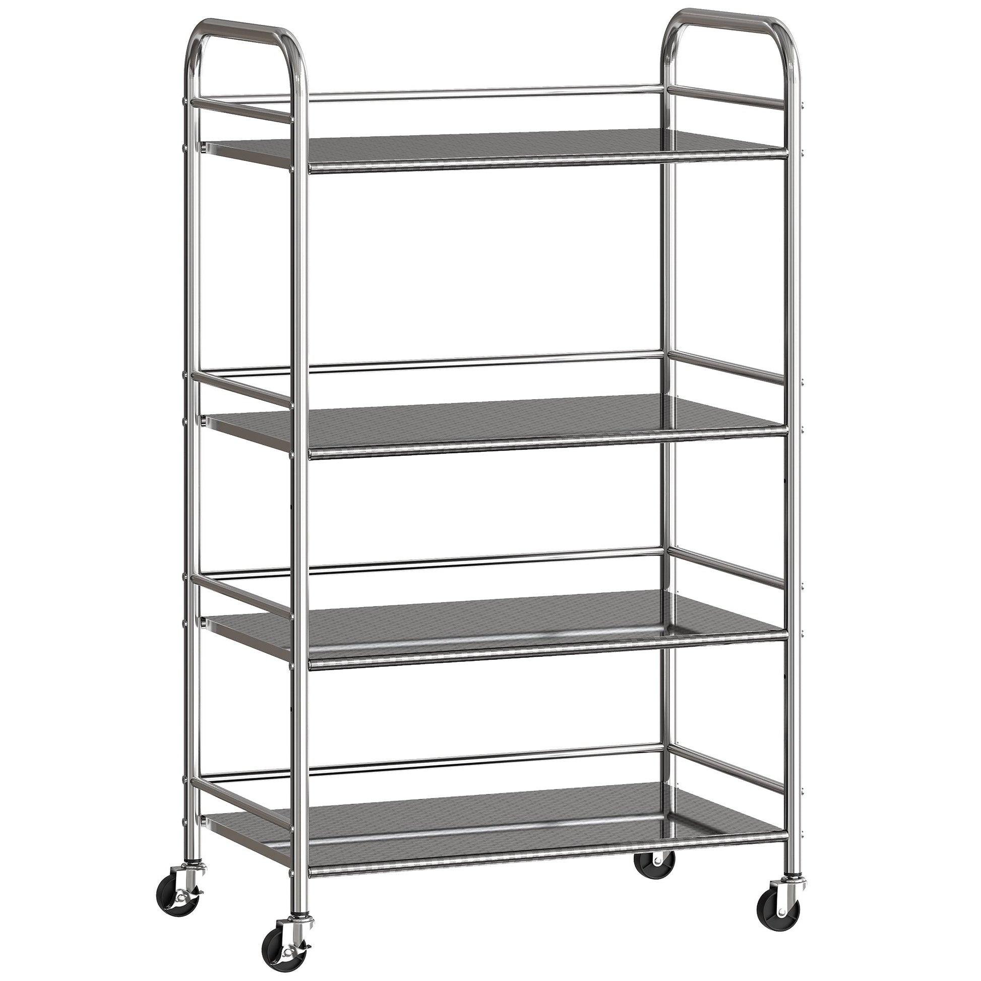 HOMCOM 4 Tier Stainless Steel Kitchen Storage Trolley with Adjustable Shelves - Silver