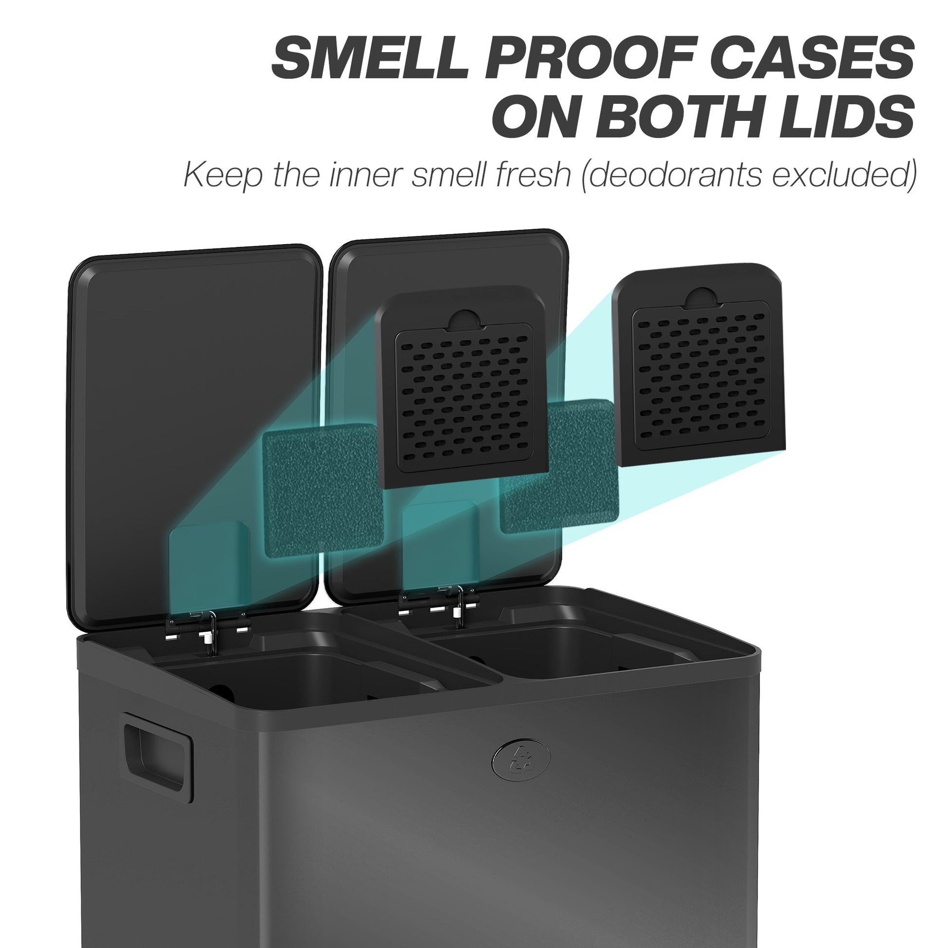 HOMCOM 40L Dual Compartment Stainless Steel Bin, with Deodoriser Holders - Glossy Black
