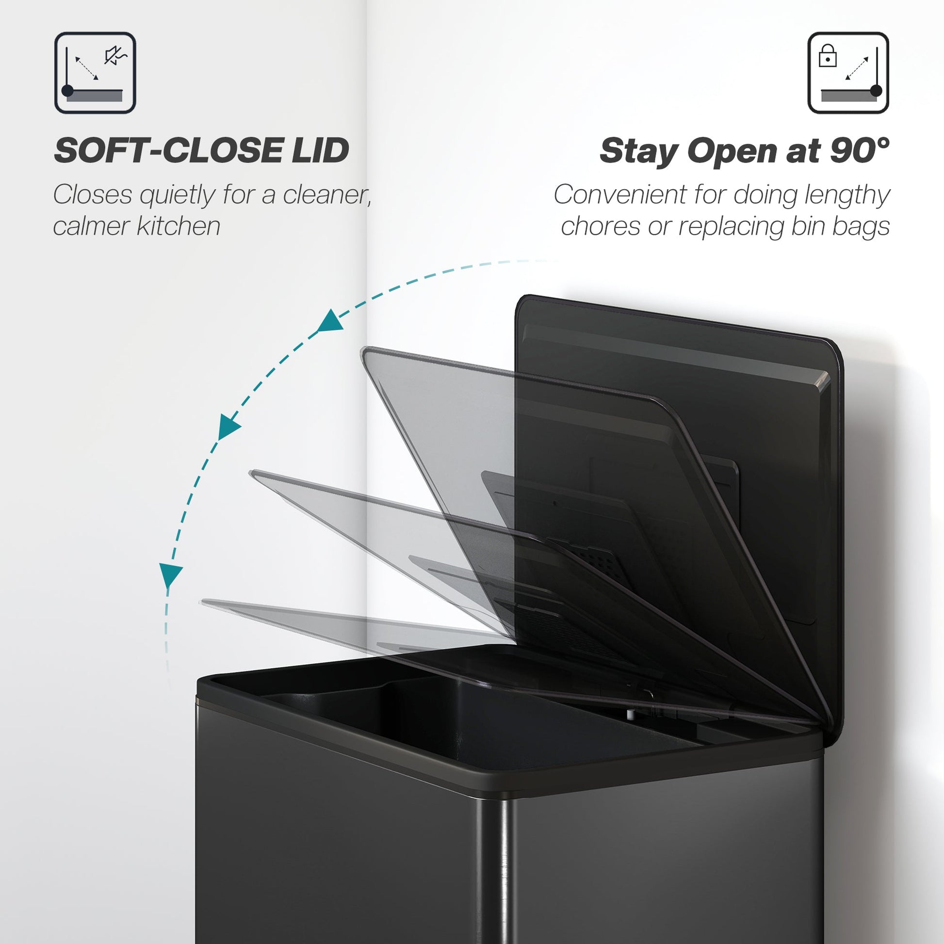 Discover the sleek HOMCOM Kitchen Bin, where style meets functionality. Its modern and fingerprint-resistant design enhances any room, while the generous 45L capacity handles daily waste with ease. Enjoy the convenience of a soft-close, stay-open lid for a smoother, quieter kitchen experience. Excellent for homes looking for both flair and practicality.