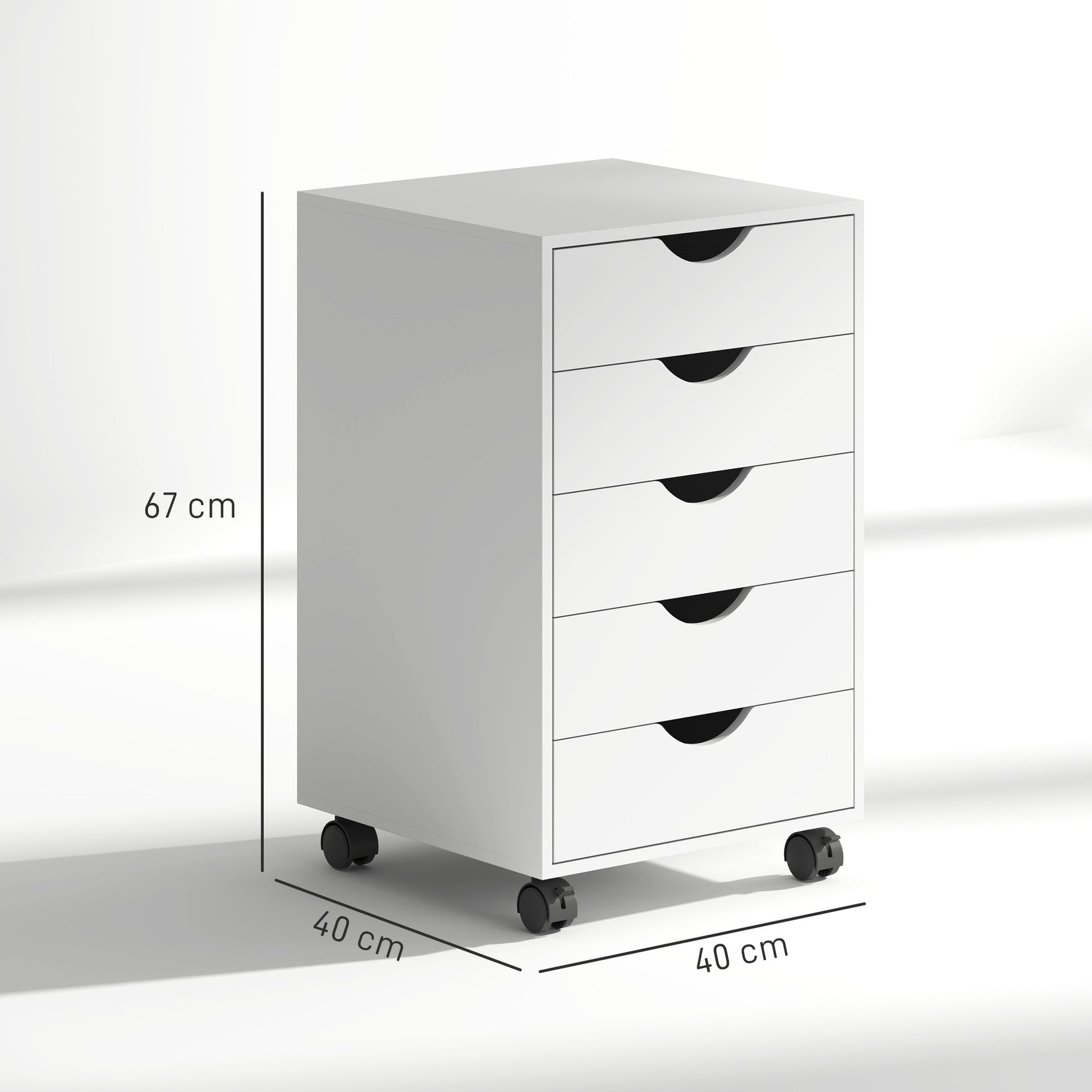 HOMCOM 5 Drawer Mobile Filing Cabinet, Vertical File Cabinet, Modern Rolling Office Storage Organizer Cupboard, White