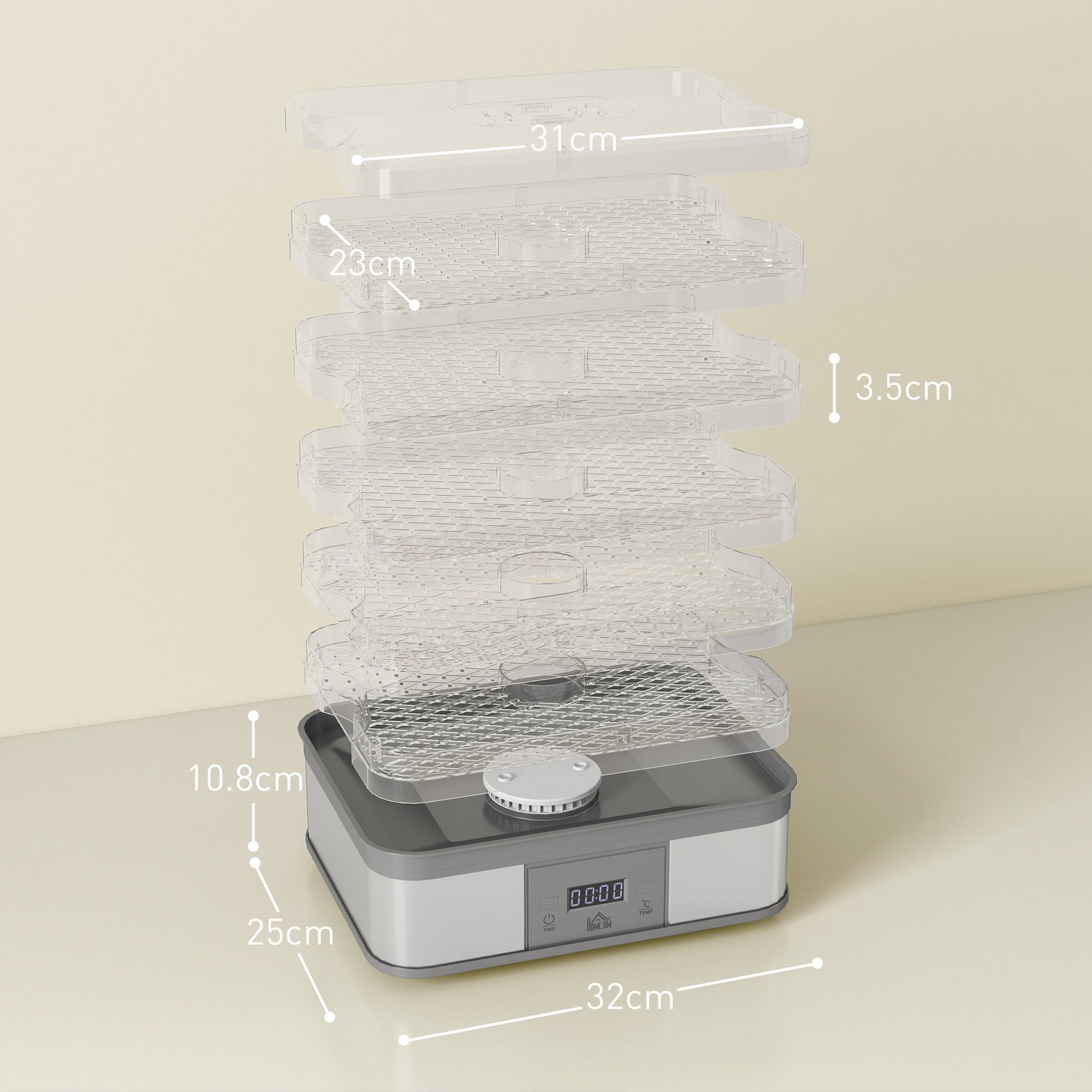 HOMCOM 5 Tier Food Dehydrator, 245W Stainless Steel Food Dryer Machine with Adjustable Temperature, Timer and LCD Display for Drying Fruit, Meat, Vegetable, Jerky and Pet Treat, Grey