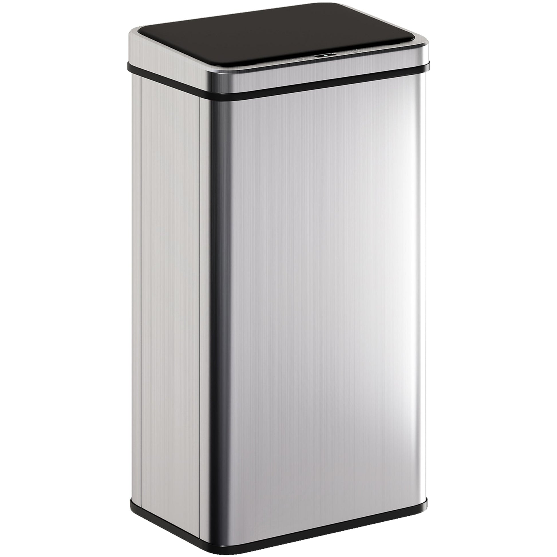 HOMCOM 50L Sensor Bin with Quiet Soft-Close Lid, Automatic Touchless Motion Sensor Kitchen Bin with Fingerprint Resistant Stainless Steel for Hygienic Gyms, Home Office Use, Silver Tone