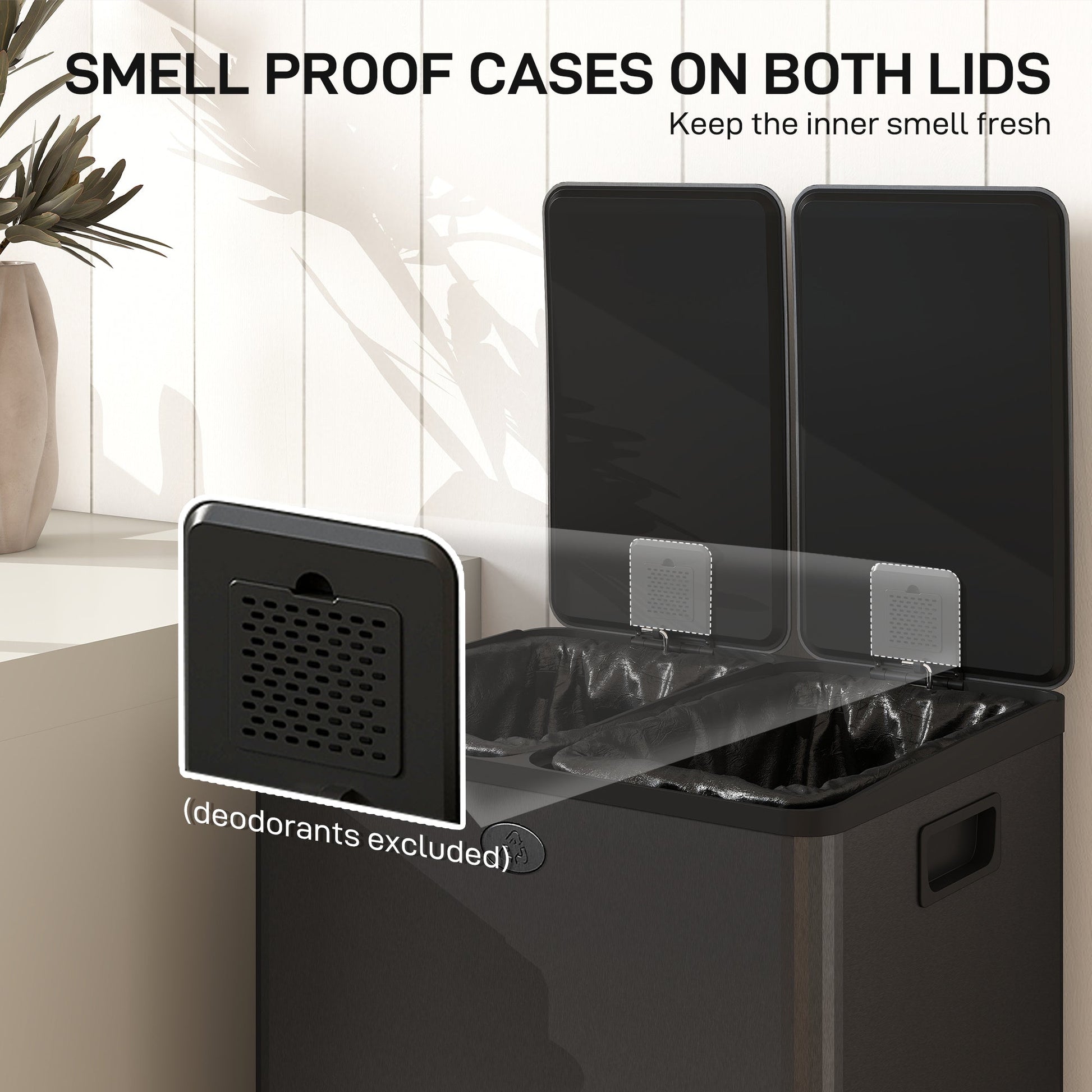 HOMCOM 56L Dual Compartment Stainless Steel Bin, with Deodoriser Holders - Black