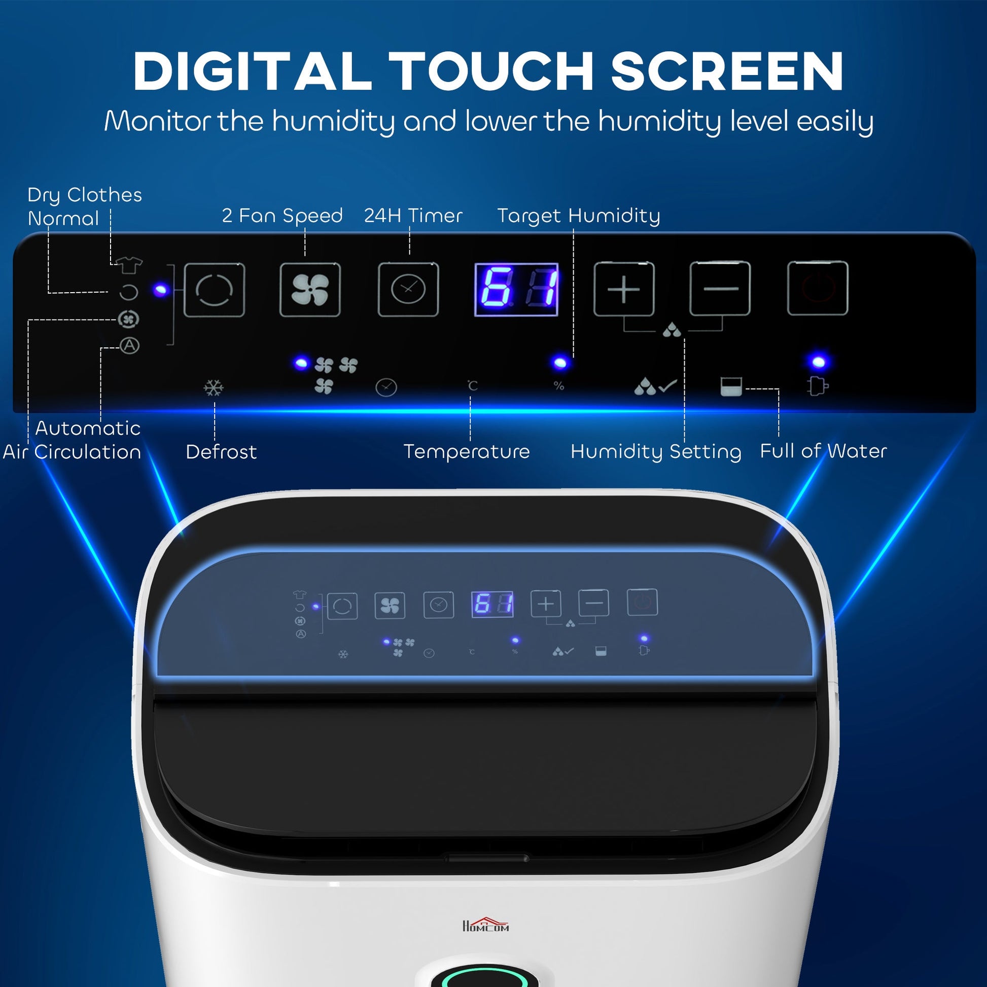 - Humidity light displays the room humidity level. LED monitor displays room humidity value and work status