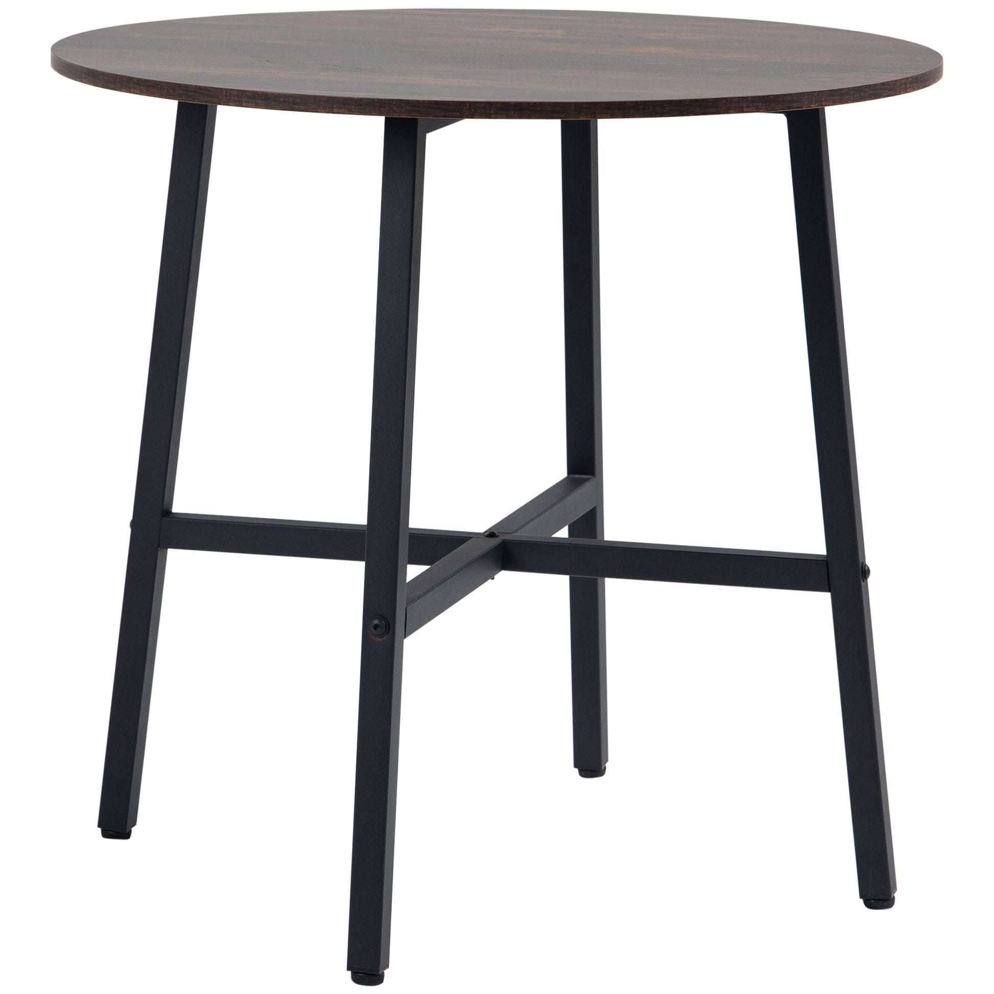Gather round, day and night with this HOMCOM Ф80cm round dining table. The wood-effect tabletop and black frame form a classic look - looks good all over the home. A powder coated steel frame makes a strong and supportive structure, with a durable particle board tabletop: a reliable place to gather round on. Complete with non-slip feet to gently protect your floor.