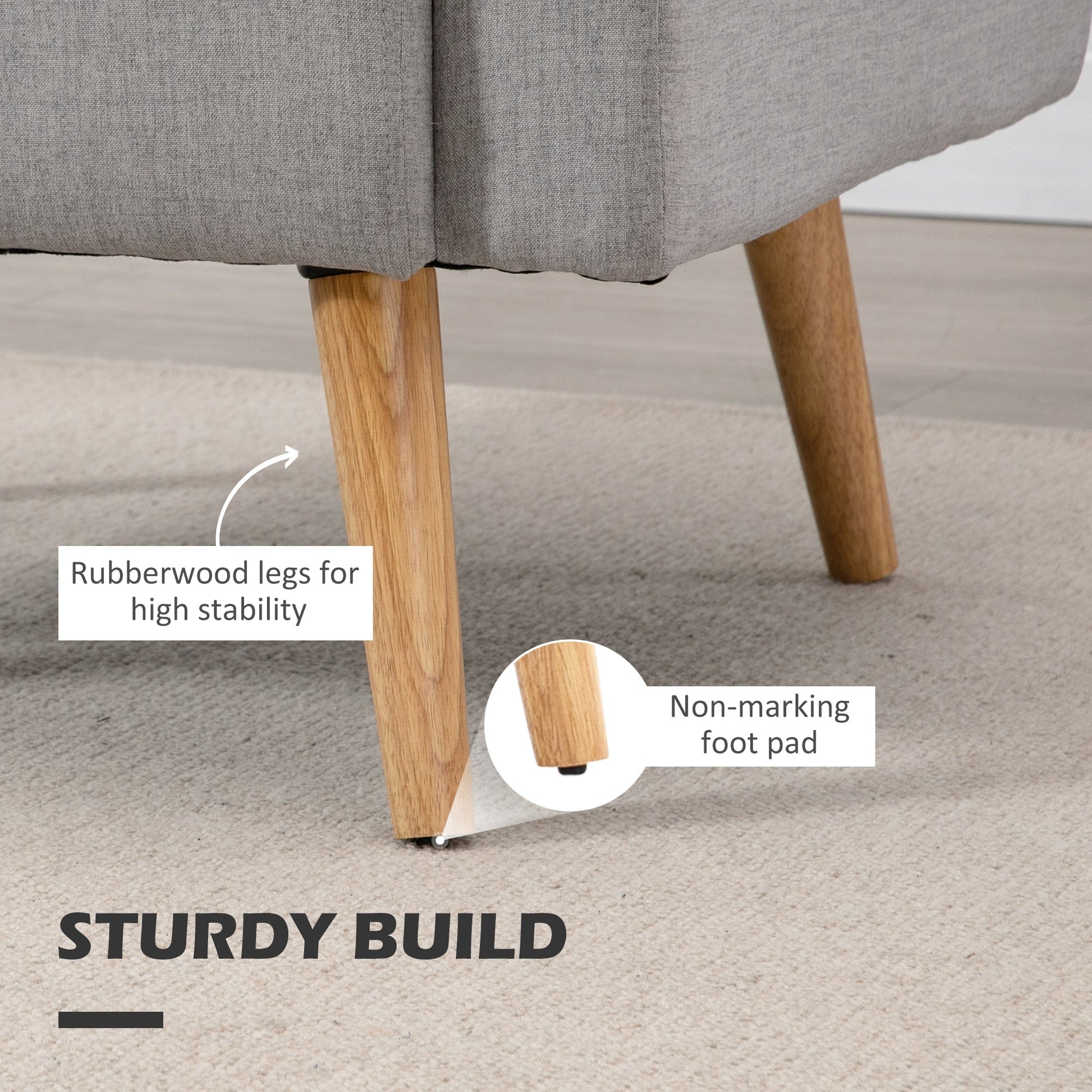 HOMCOM Accent Chair, Linen-Touch Armchair with Pillow, Upholstered Leisure Lounge Sofa for Living Room, Club Chair with Rubber Wooden Frame, Grey