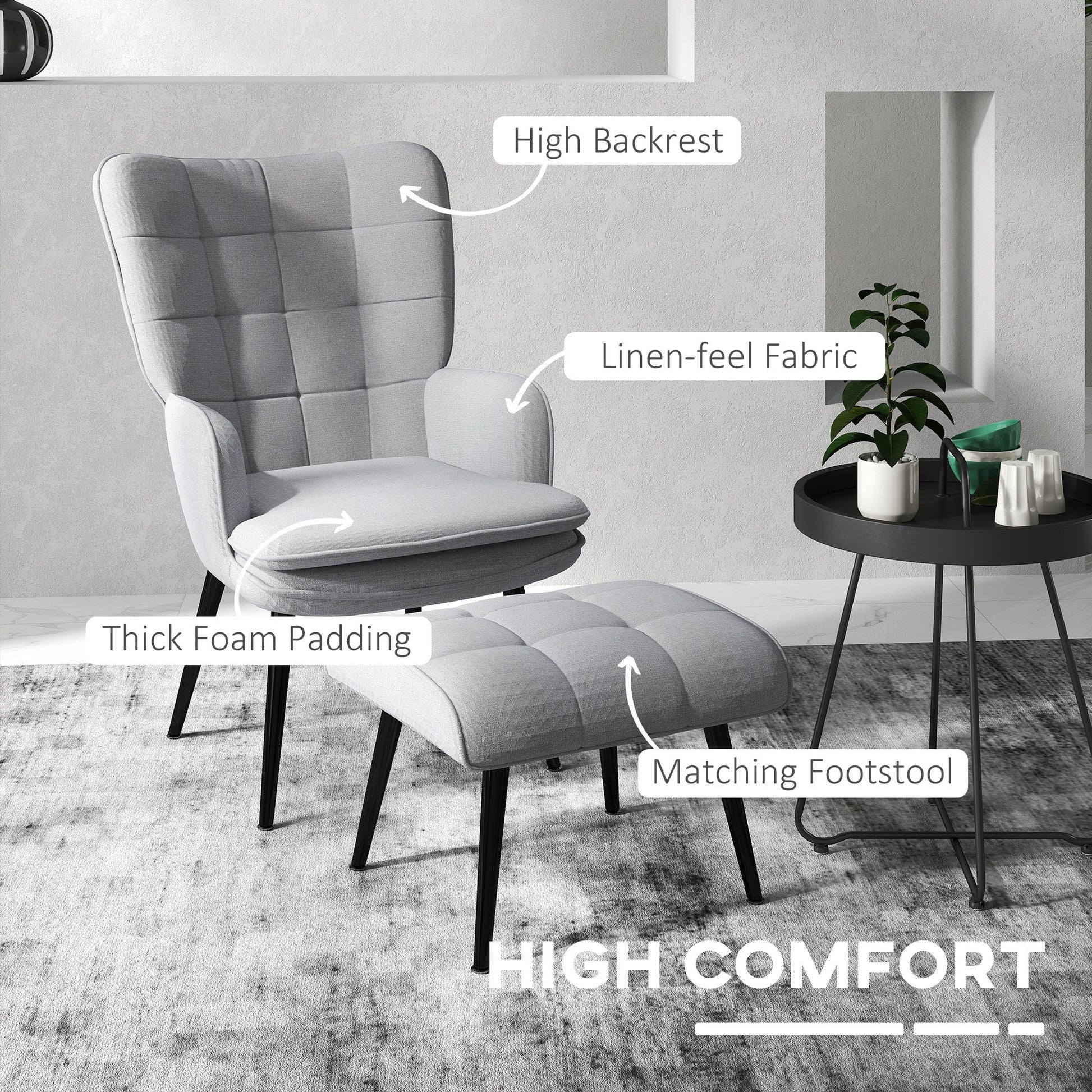 HOMCOM Armchair with Footstool, Living Room Chair, Linen Accent Chair for Bedroom, Home Study, Light Grey