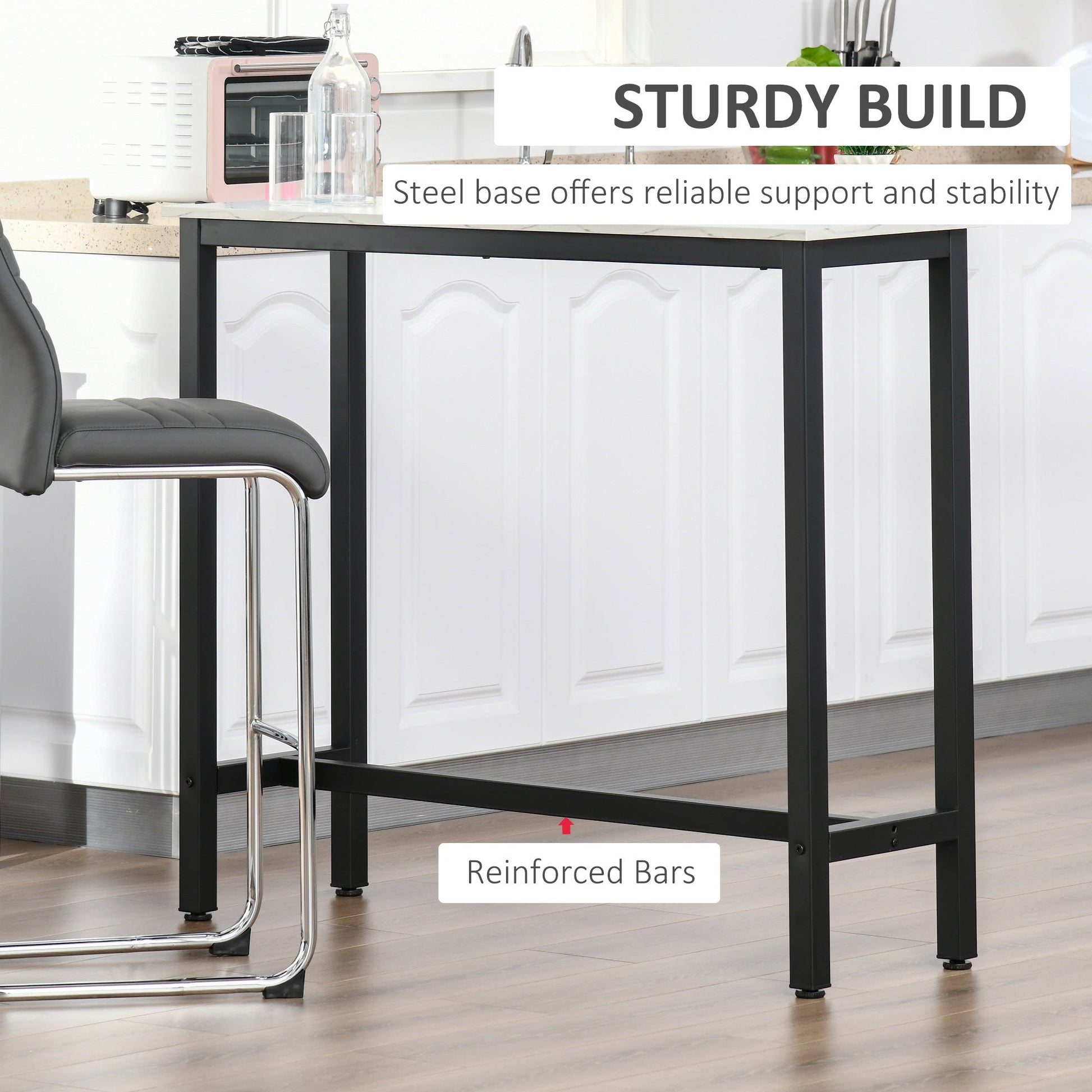 Relax day or night with this stylish bar table from HOMCOM. Featuring a marble grain top, it adds a industrial touch to your space and blends easily with any decor. The solid steel frame and particleboard top ensure long-lasting use—excellent for enjoying coffee, cocktails, or conversation. A practical and charming addition to any home.