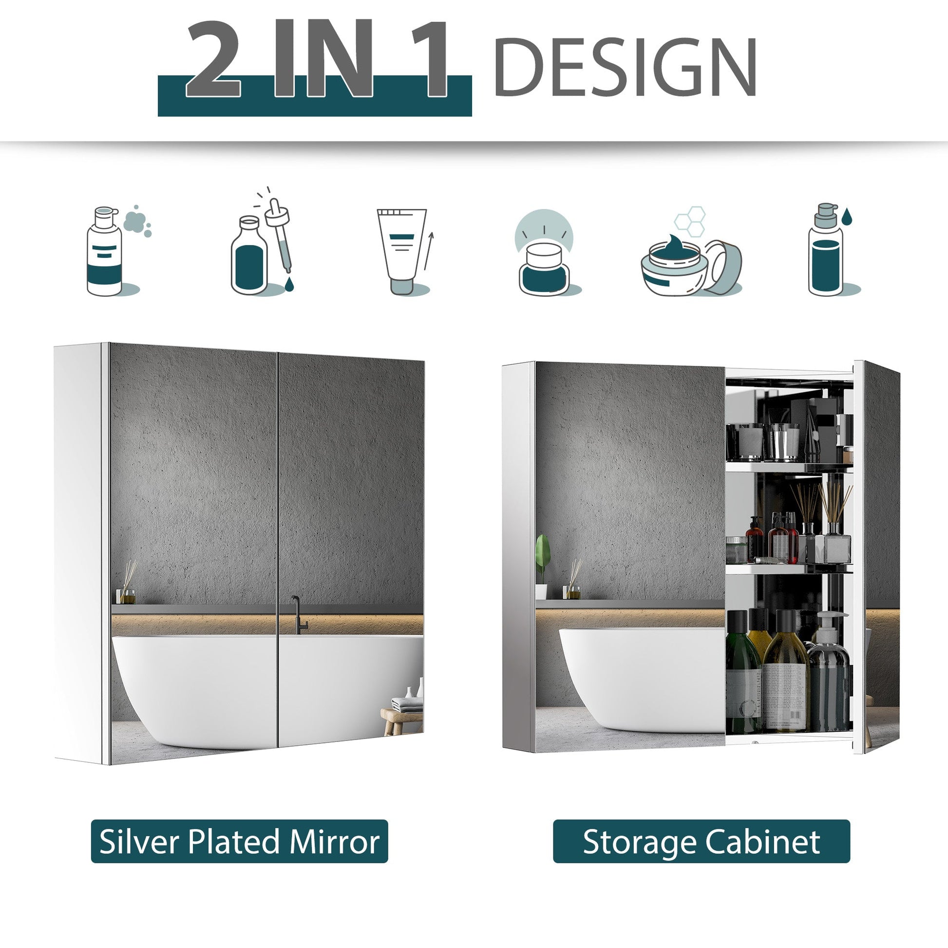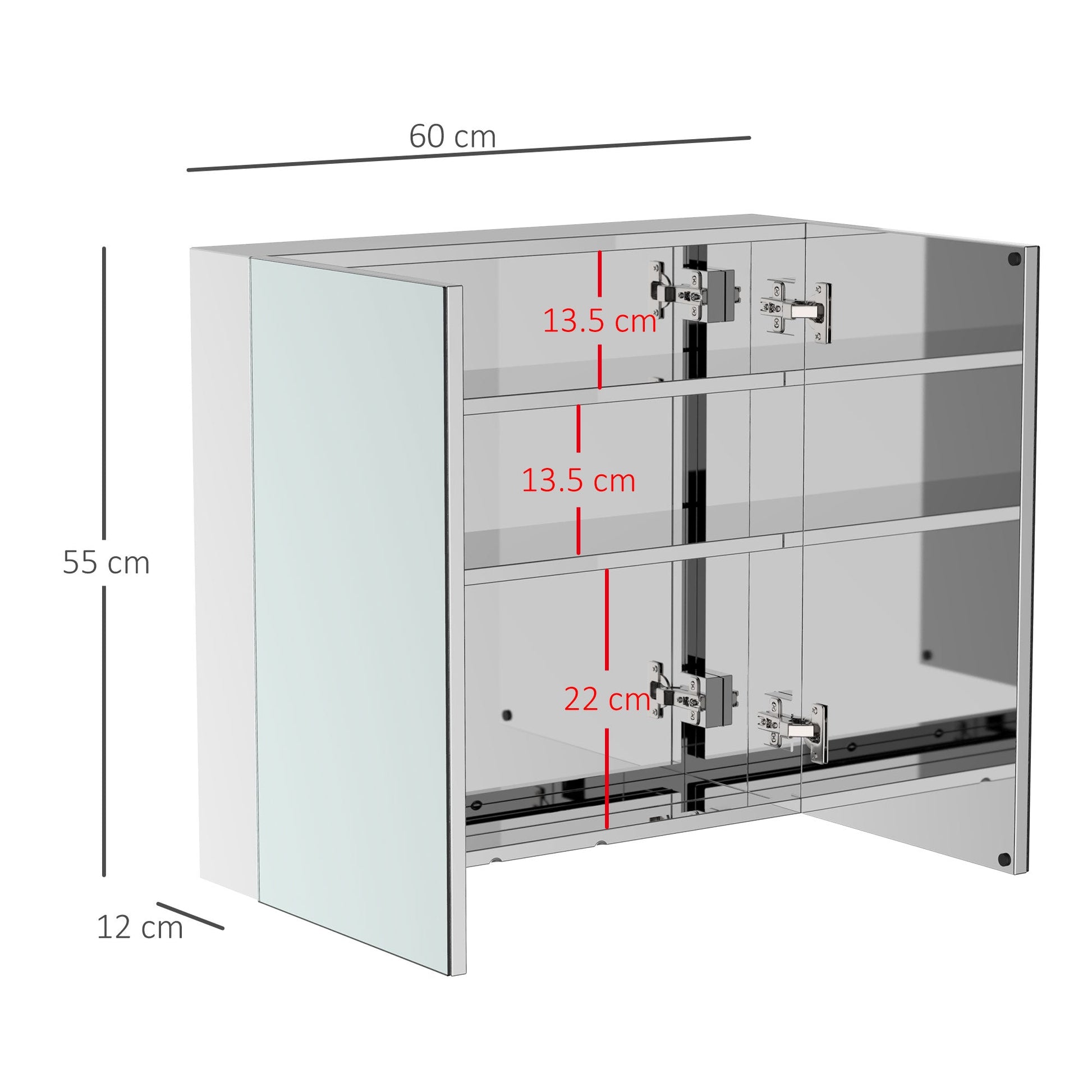 HOMCOM Bathroom Mirror Cabinet, Stainless Steel Wall Mounted Bathroom Storage Cabinet with Double Doors, 60x55cm