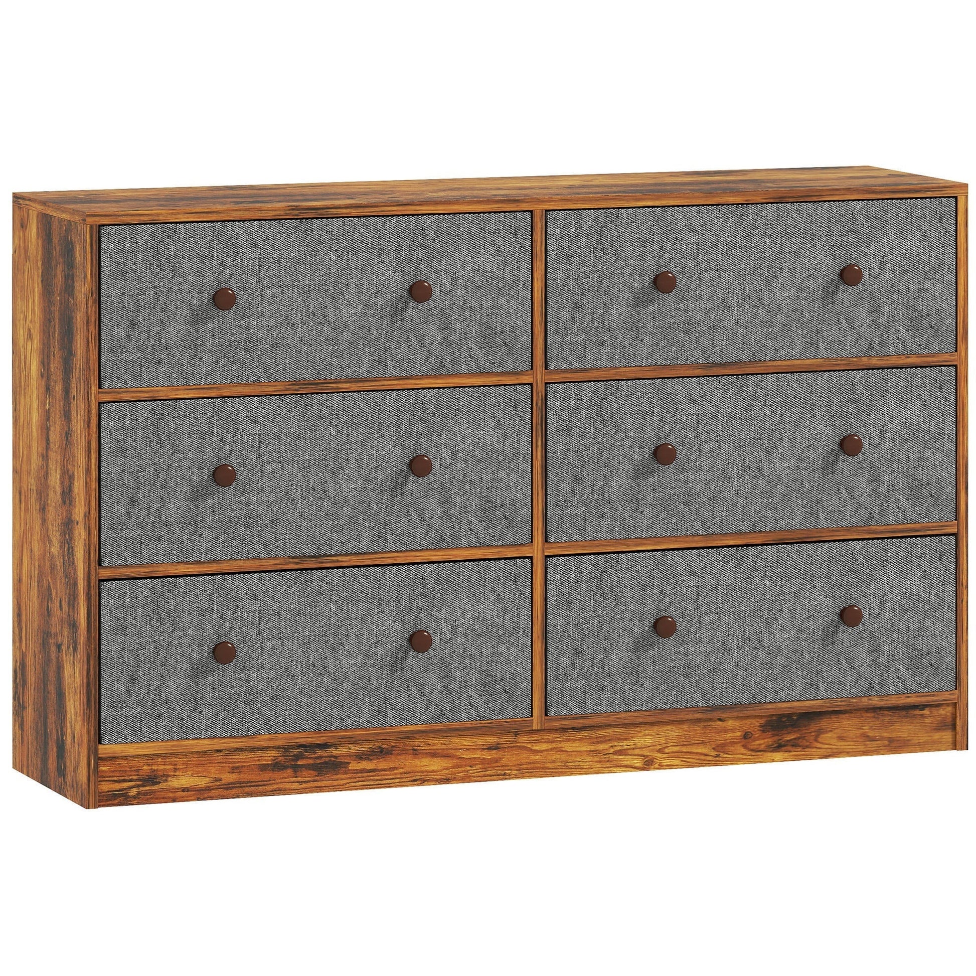 HOMCOM Chest of Drawers, Dresser with 6 Fabric Drawers - Grey and Rustic Brown