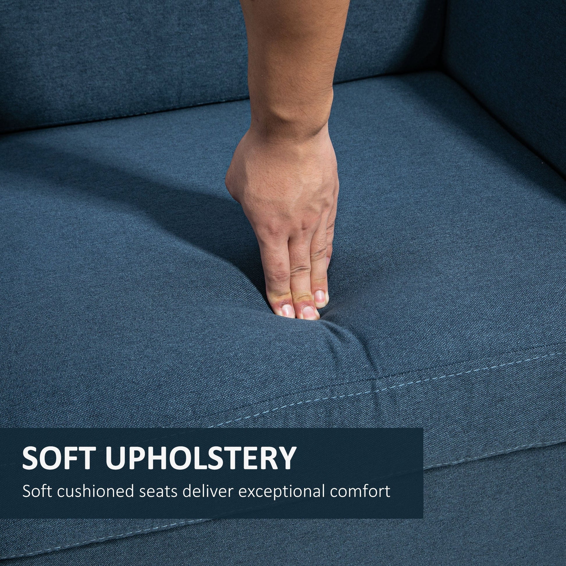 HOMCOM Compact Loveseat Sofa, Modern 2 Seater Sofa for Living Room with Wood Legs and Armrests, Blue