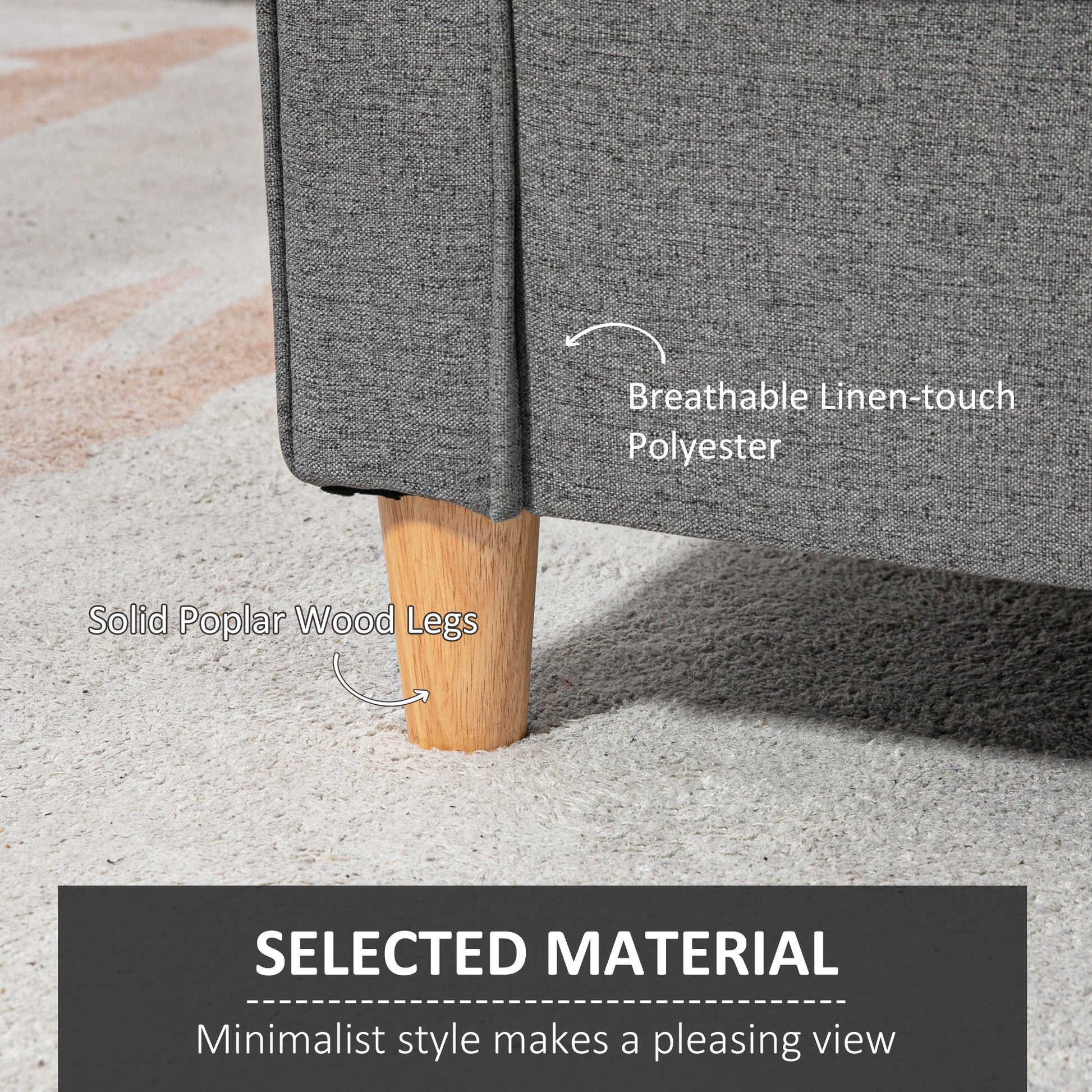 HOMCOM Compact Loveseat Sofa, Modern 2 Seater Sofa for Living Room with Wood Legs and Armrests, Grey