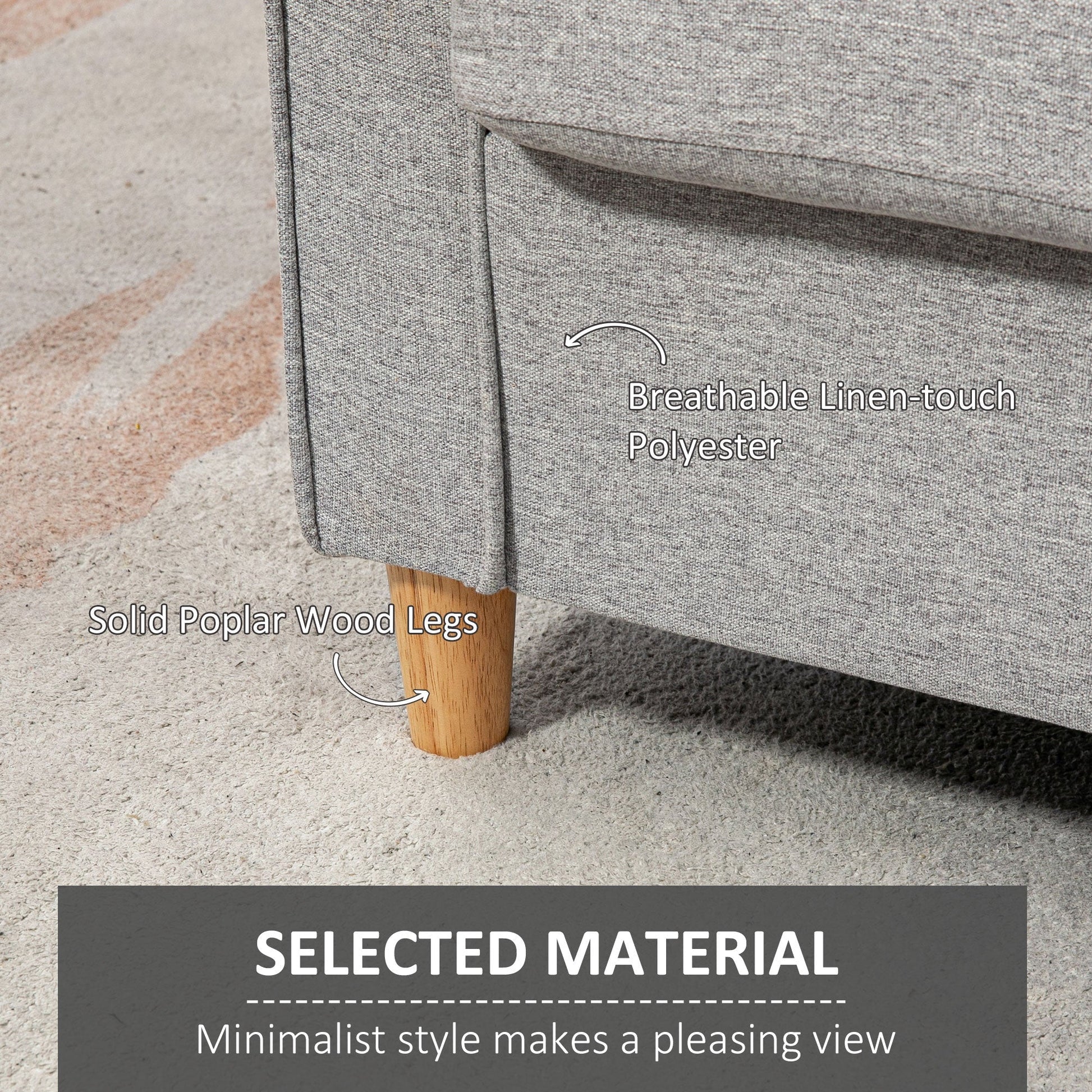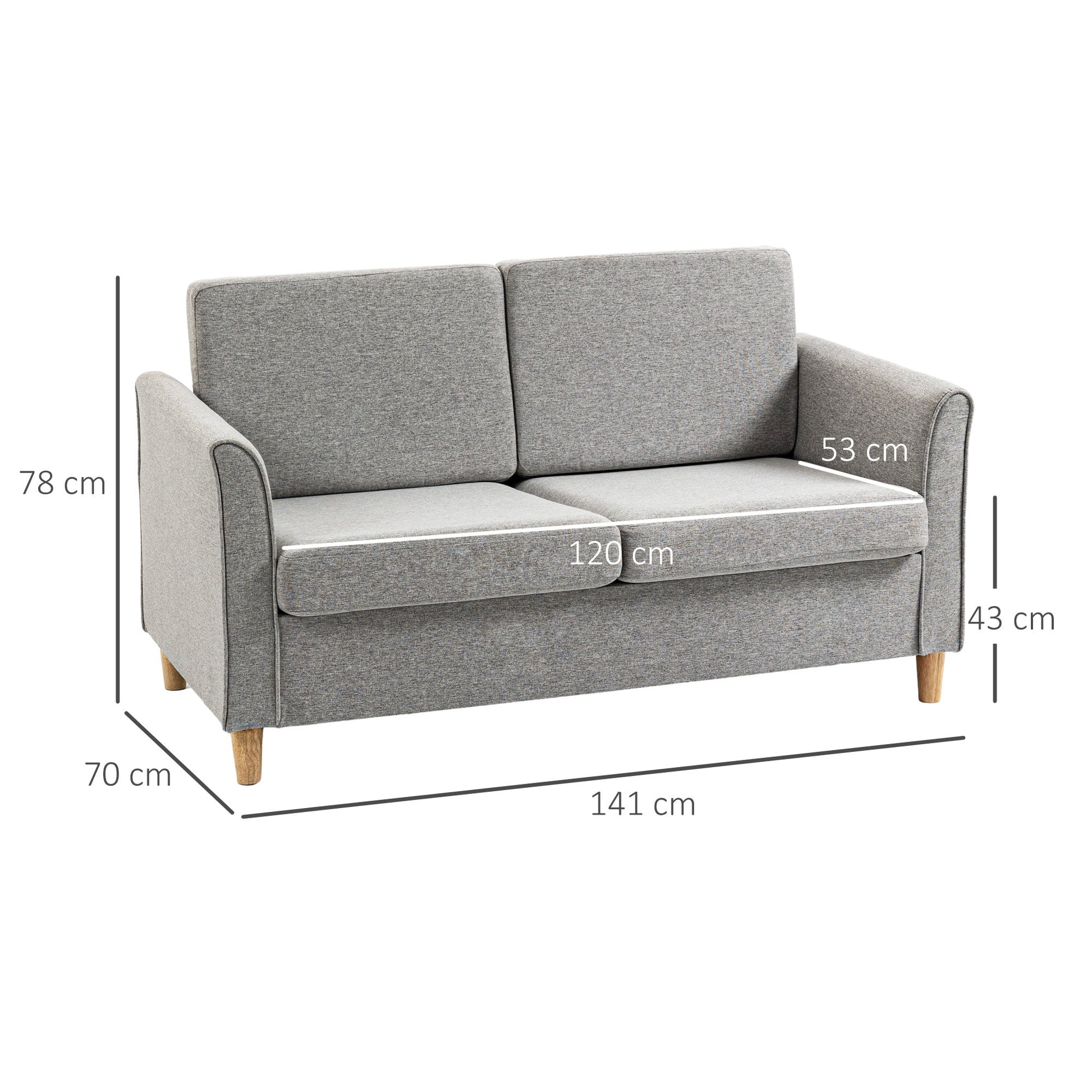 HOMCOM Compact Loveseat Sofa, Modern 2 Seater Sofa for Living Room with Wood Legs and Armrests, Light Grey