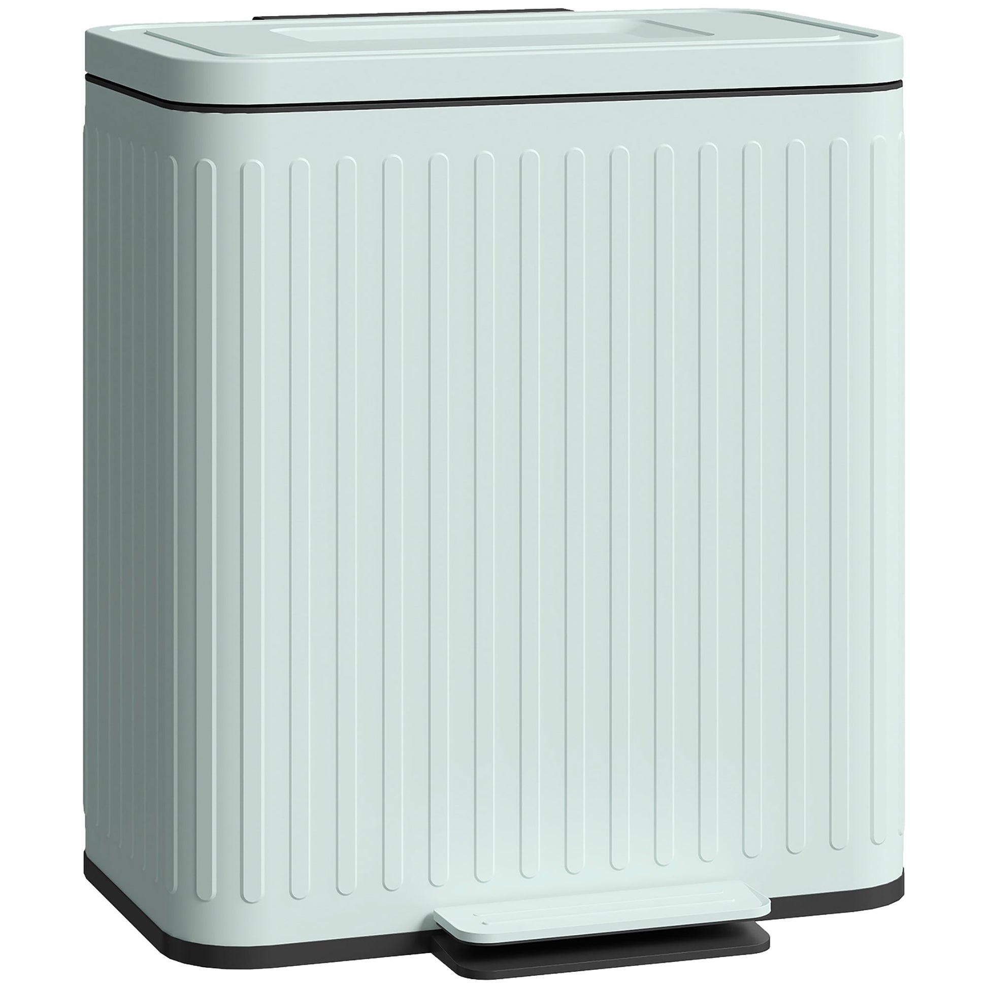 HOMCOM Dual Kitchen Bin, 2 x 20L Double Bin for Recycling and Waste, Fingerprint-proof Pedal Bin with Soft-Close Lid, Removable Inner Buckets, Green