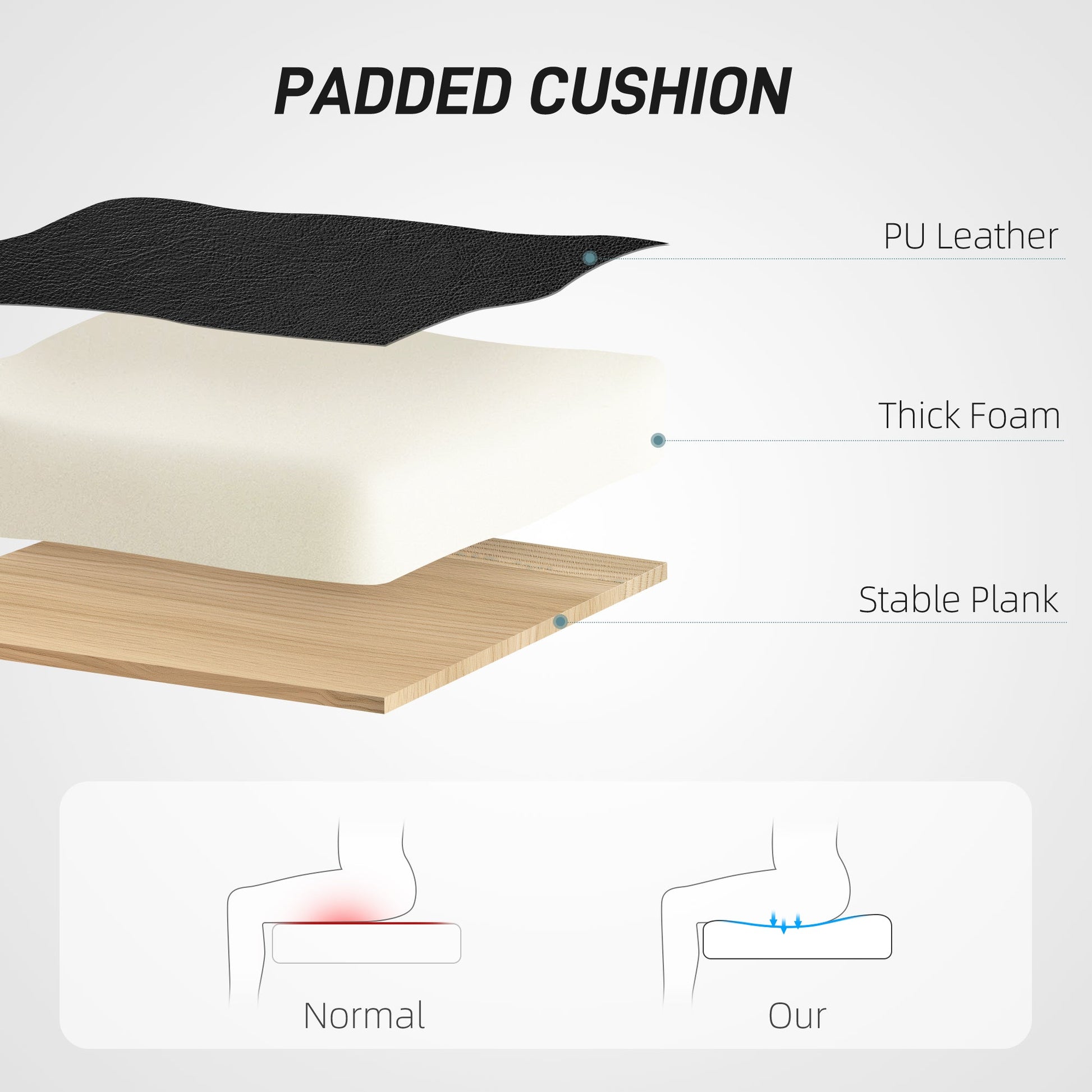 - Thick padded cushions are wrapped with soft PU leather to enhance comfort