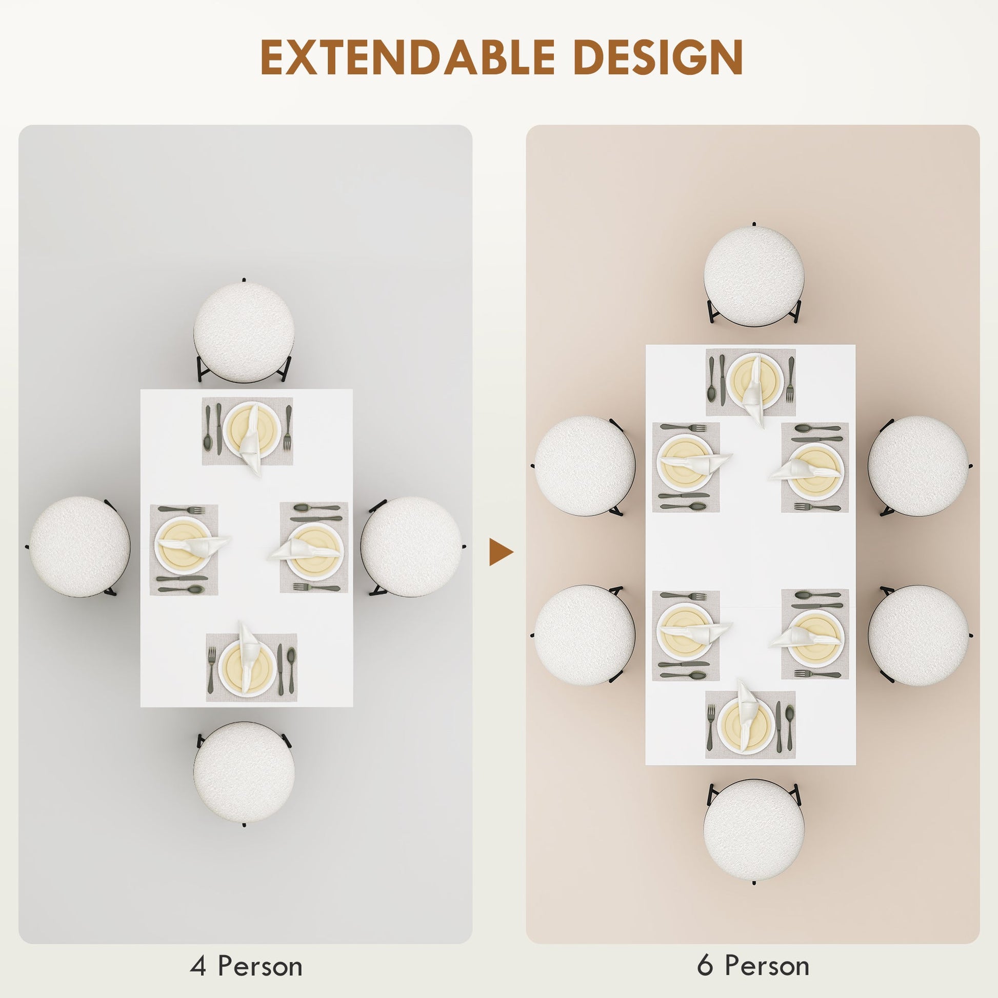 HOMCOM Extending Six-Person High Gloss Dining Table - White