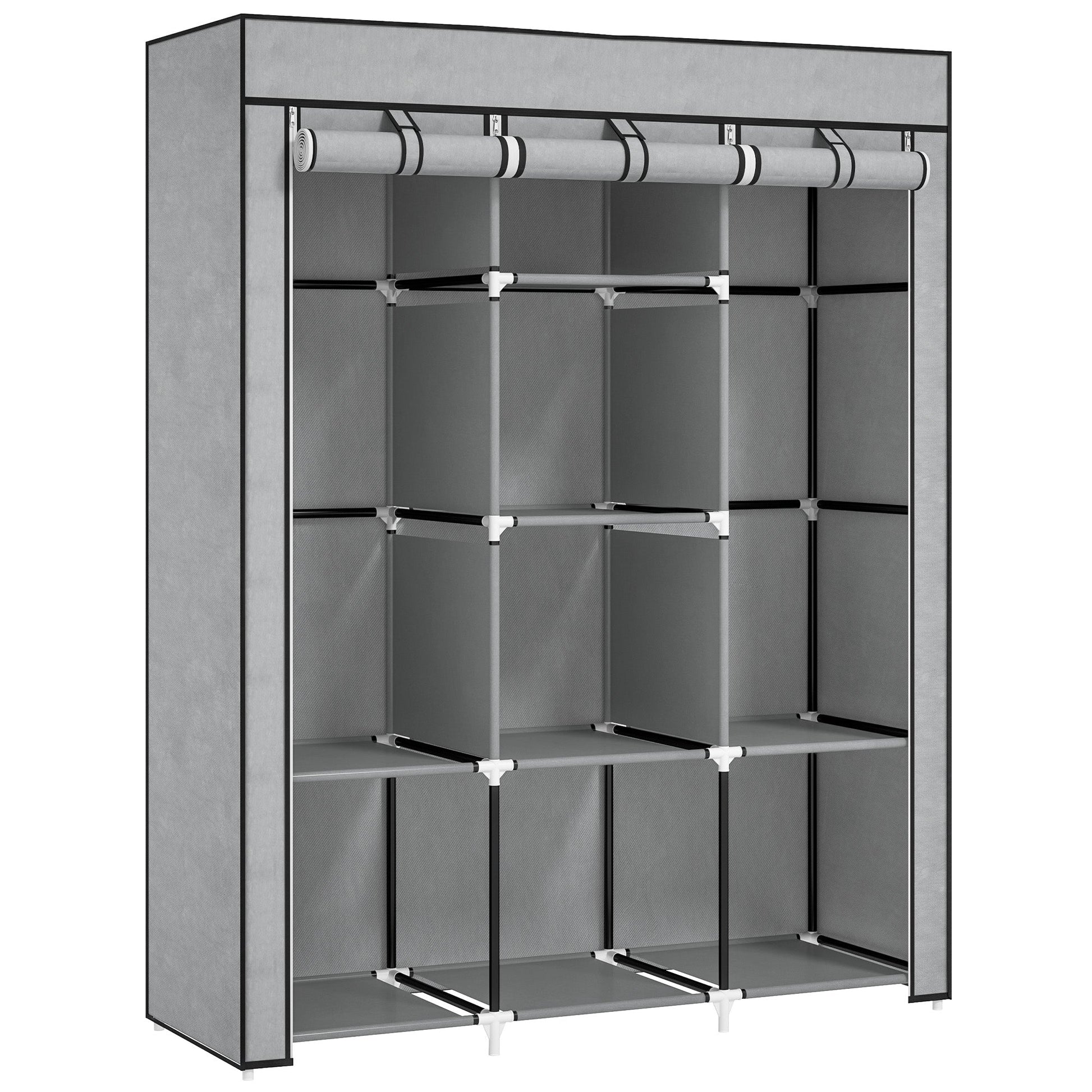 Whether temporary or permanent, this HOMCOM fabric wardrobe is for you. With two rails and eight shelves, there's plenty space for holding and organising clothes, towels and other linens. The fabric cover shields inside from dust, complete with a zipped roll-up door for easy access.