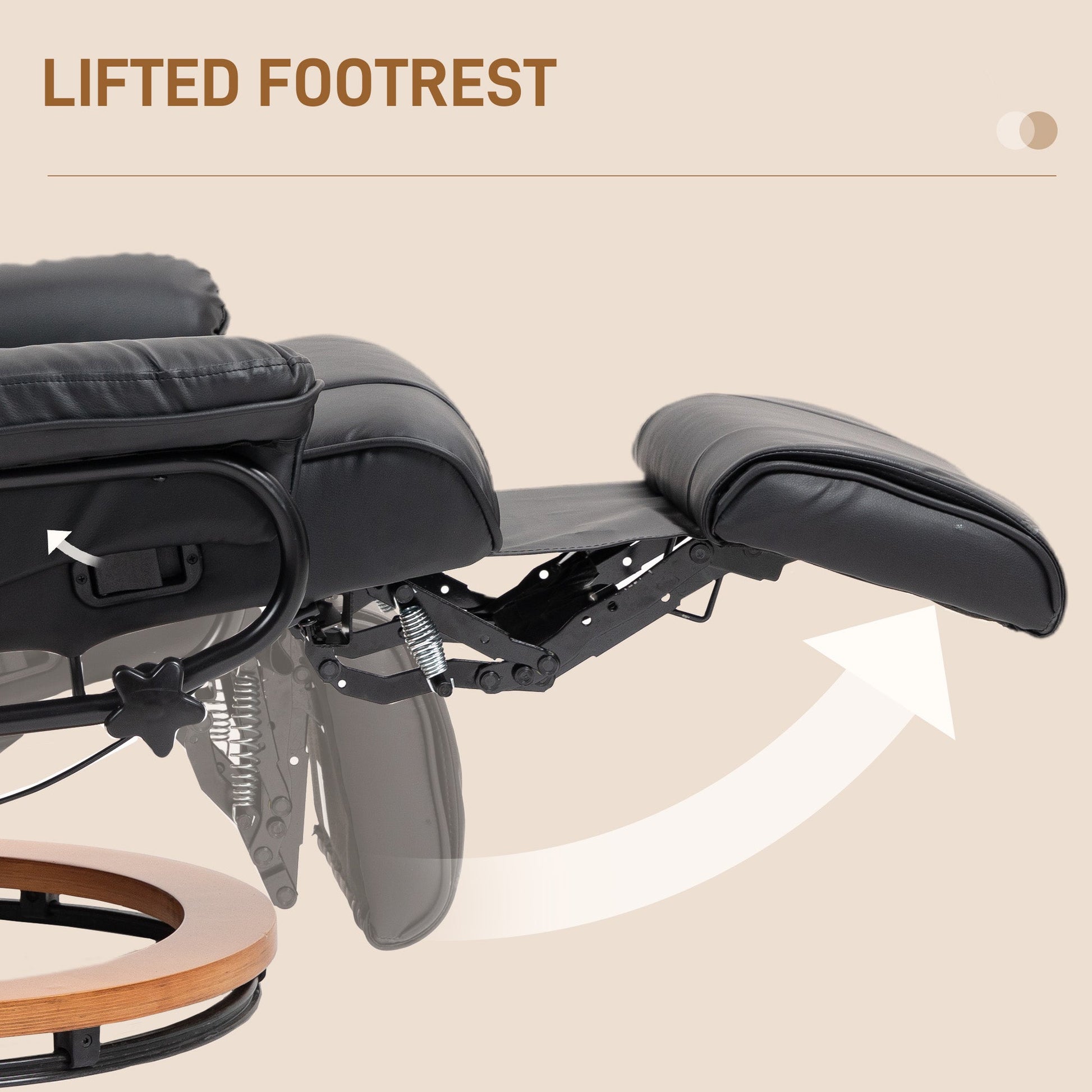 Relaxation whenever, with this HOMCOM swivel recliner. The 135 reclining back allows you to lie back to a position you want, with a footrest to elevate your lower body - full body relaxation. Filled with comfortable foam padding, complete with smooth and stylish faux leather upholstery.
