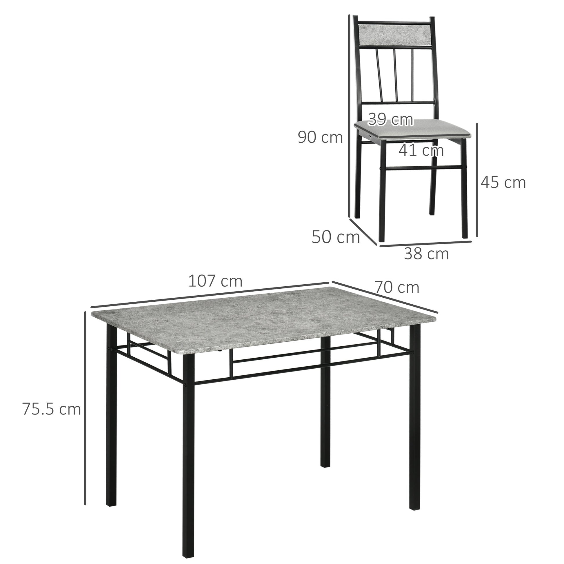HOMCOM Five-Piece Marble Effect Dining Table Set - Grey/Black