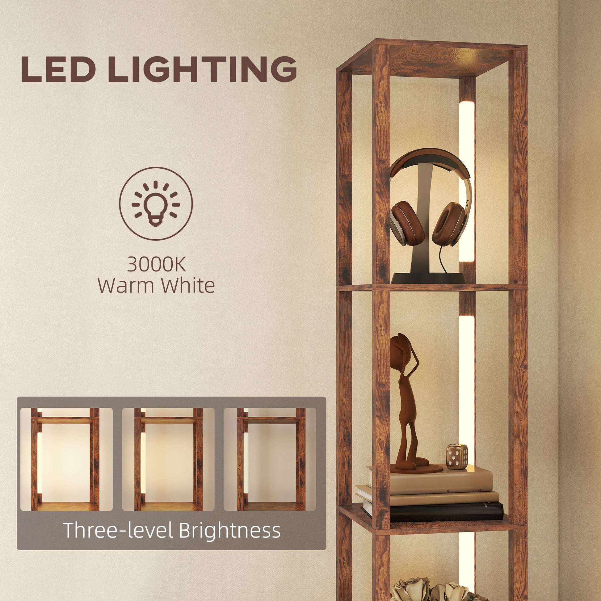 HOMCOM Floor Lamp with Shelves, LED Column Modern Standing Lamp with Fabric Drawer, Adjustable Brightness, Foot Switch for Living Room, Bedroom, Office, Rustic Brown