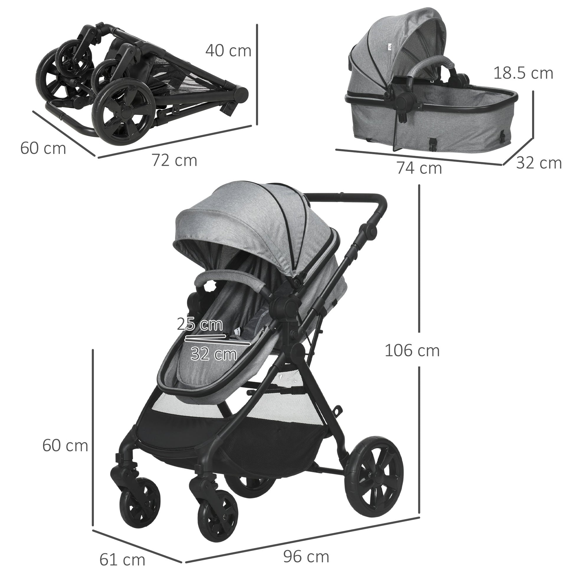 HOMCOM Foldable Baby Stoller, with Reclining Backrest, Adjustable Canopy, for Ages 0-36 Months - Grey