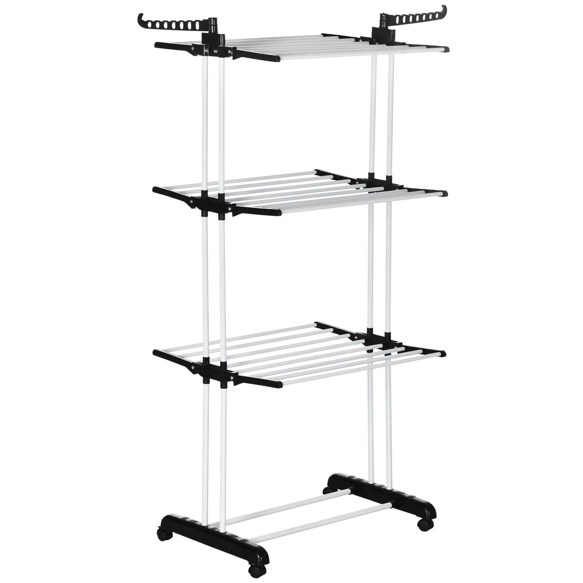 - Three-tier design, clothes horse also has two small top hooks for smaller garments