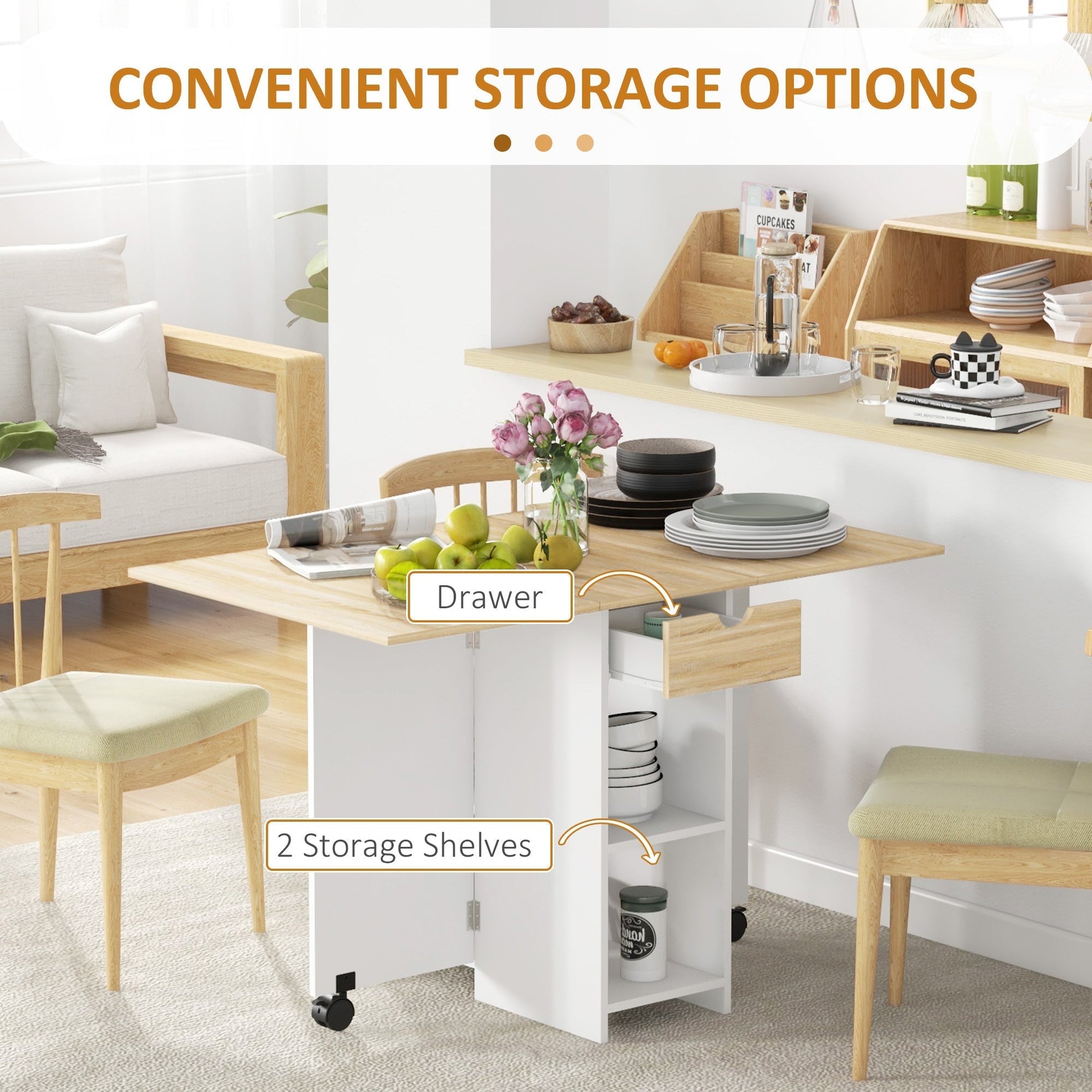 HOMCOM Folding Dining Table, Drop Leaf Table for Small Spaces, Foldable Table with Drawer and Storage Shelves for Kitchen, Dining Room, Oak