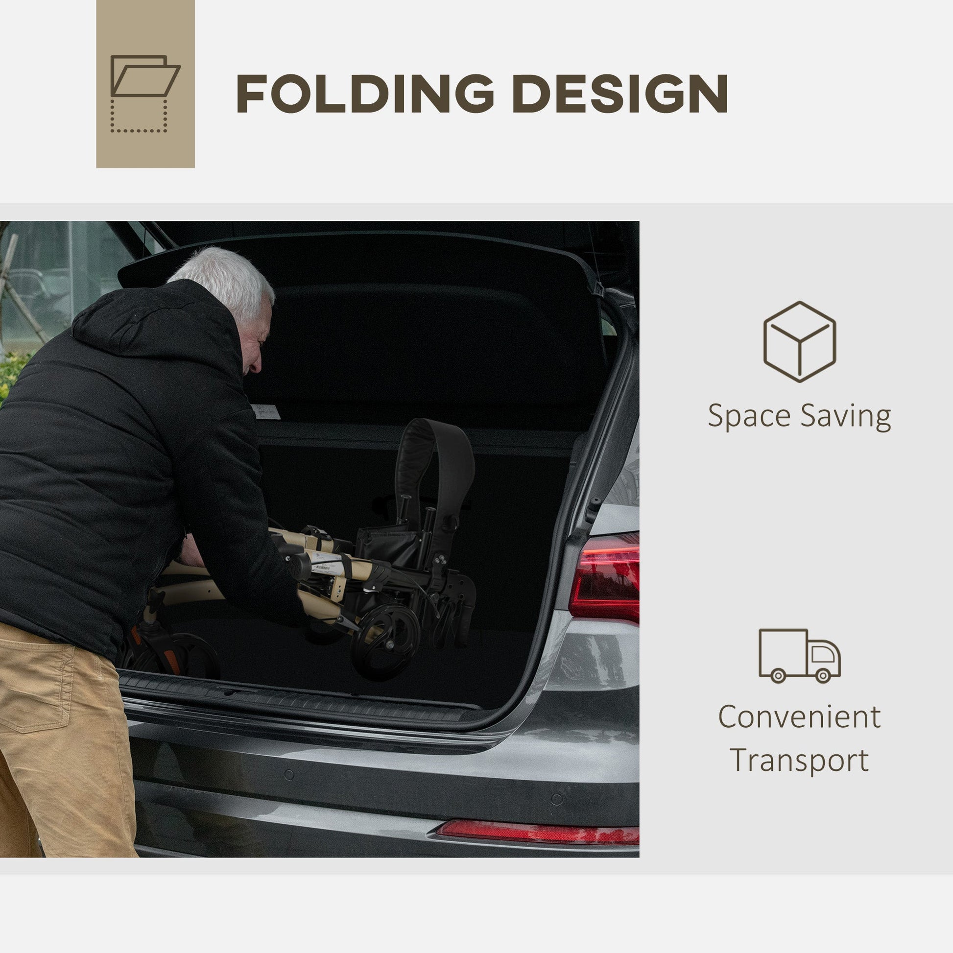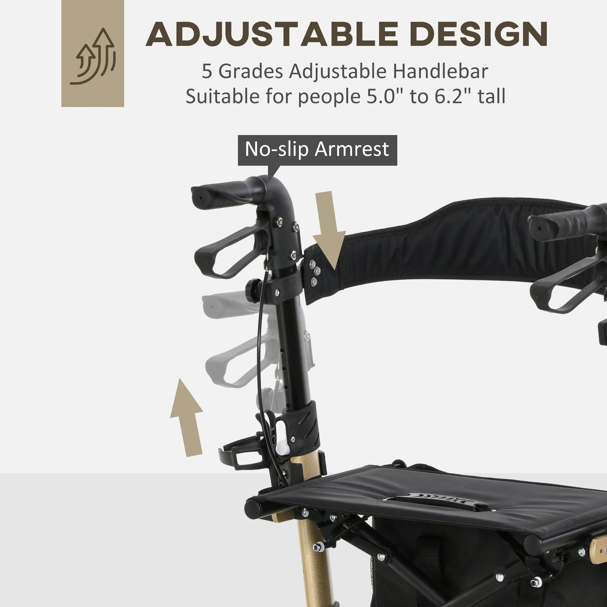 HOMCOM Folding Rollator with Cane Holder, Adjustable Handle Height and Aluminum Frame, 4 Wheeled Mobility Walker with Seat and Bag, Gold