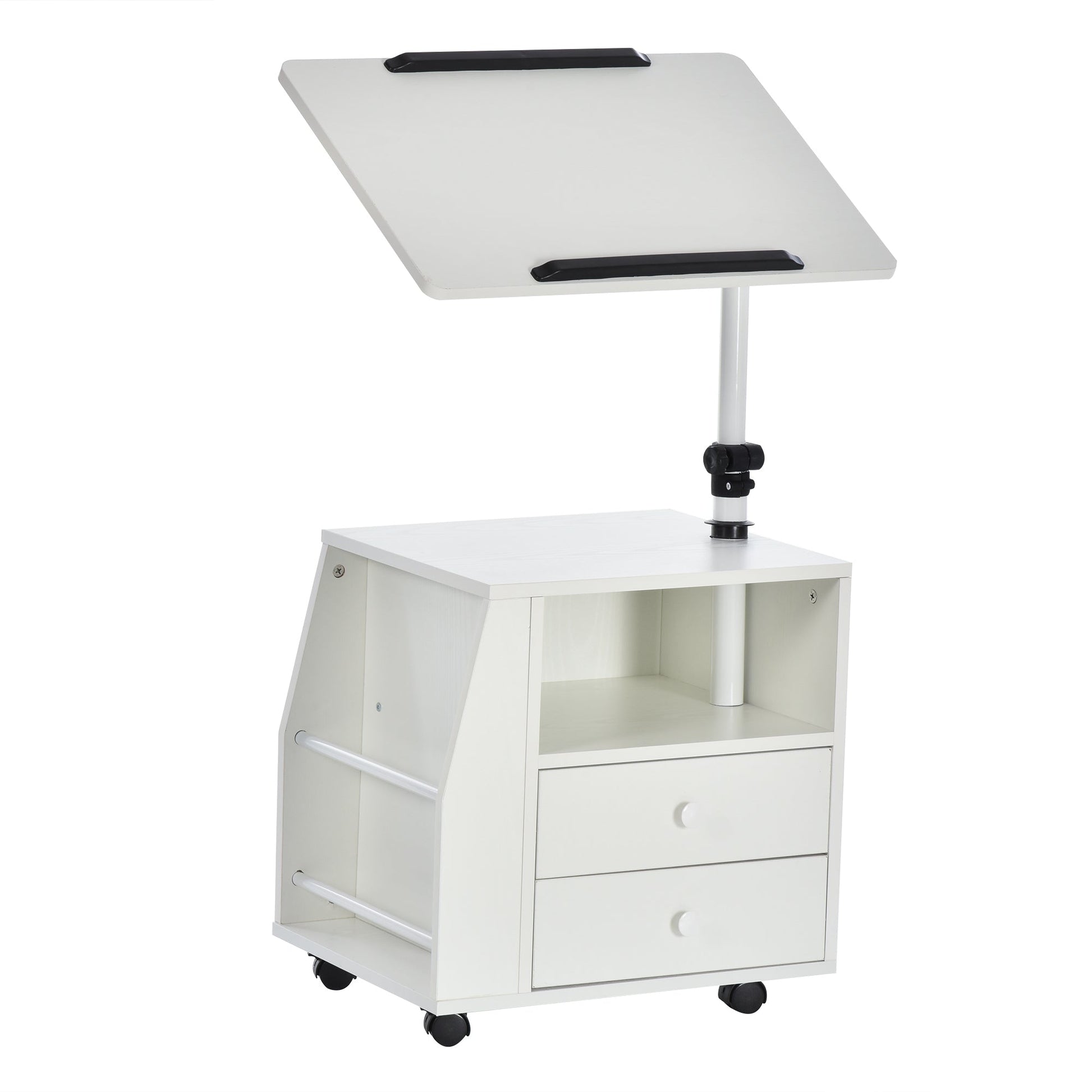 This storage cart with a tilt/swivel laptop table from HOMCOM is compact and highly functional. You can use this next to the couch as an end table and swing the arm over the arm rest to use as a work space for your laptop. With the edge stopper, your notepads, pens, headphones etc. can safely stay at the station. With the brilliant swivel caster wheels, it can be moved to anywhere you need it and also be used as nightstand, drawing board, console table, storage cabinet etc. A particle life helper for you!